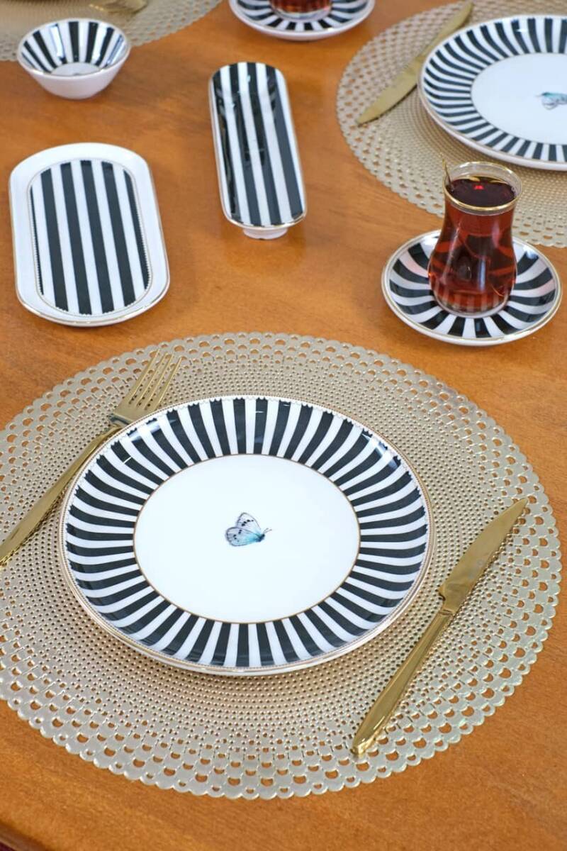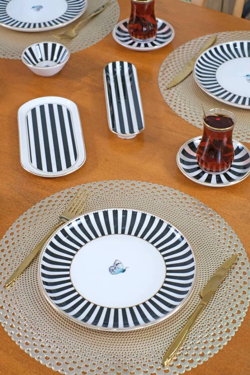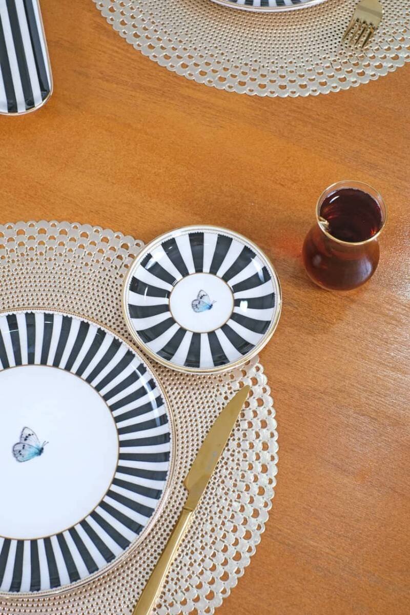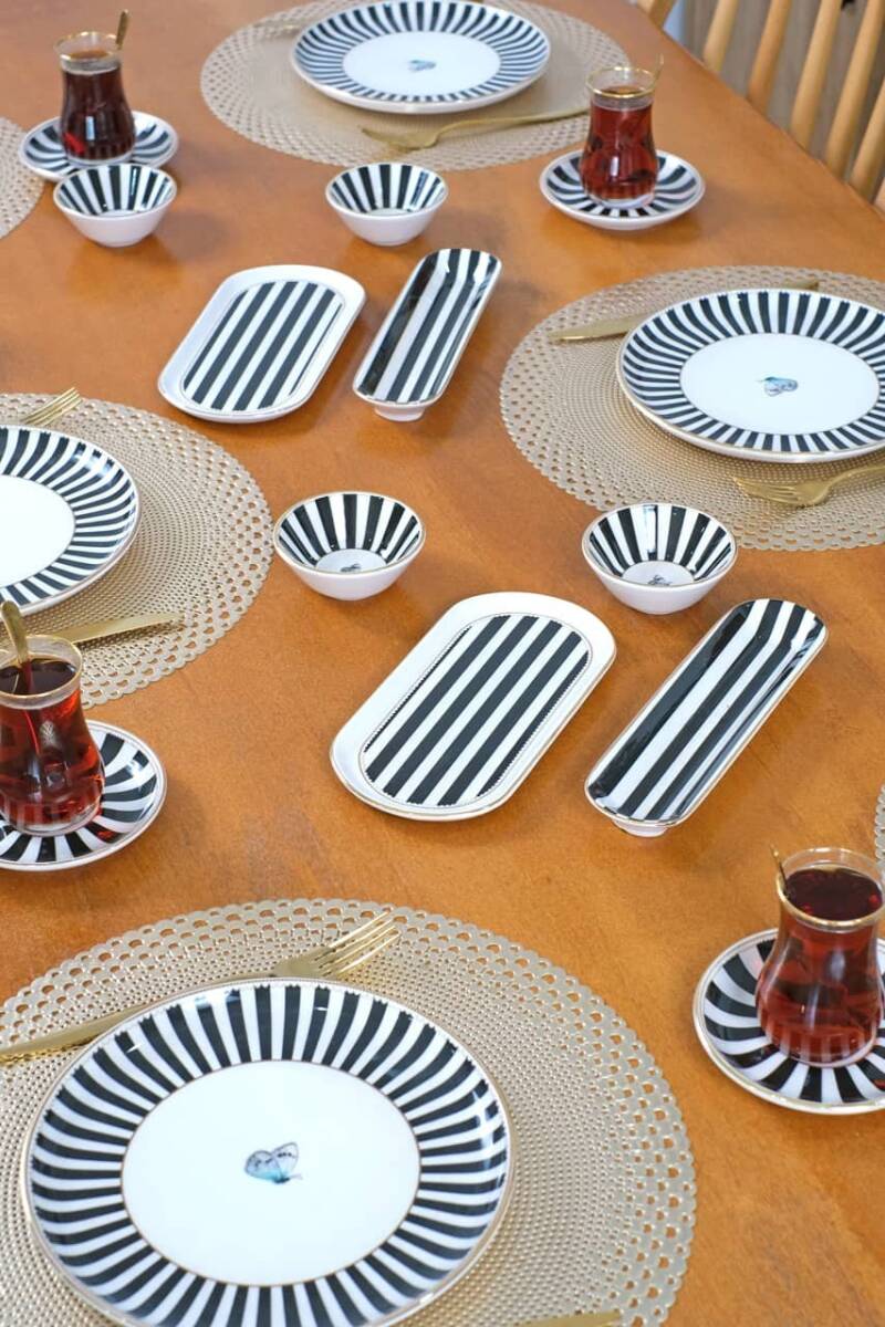 Glore Asya Black Butterfly 32 Parça 6 Kişilik Altın Yaldızlı Seramik Kahvaltı Takımı