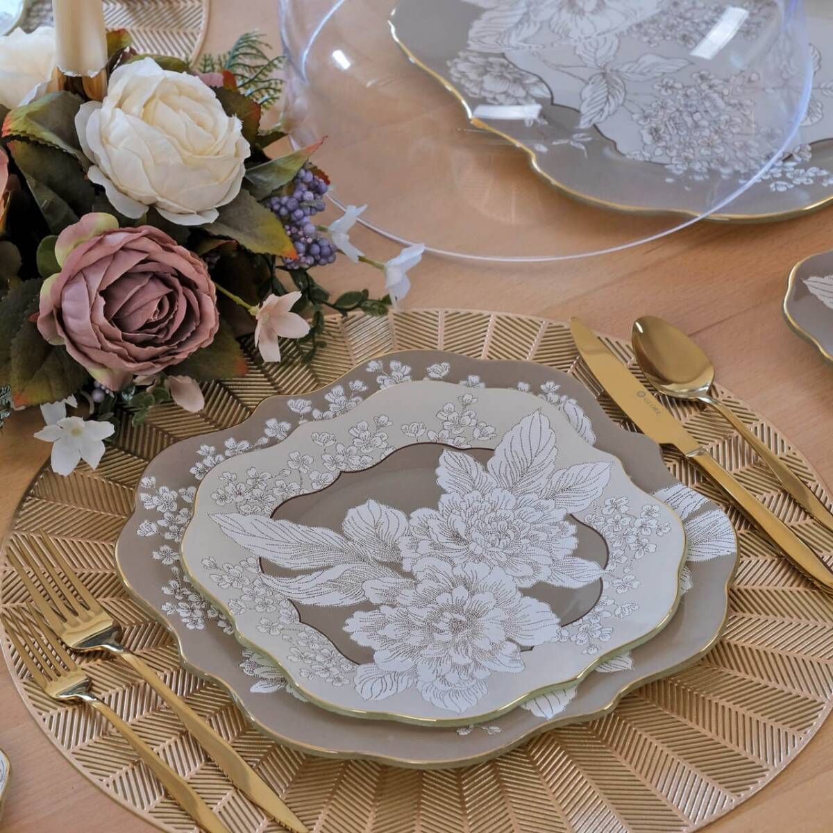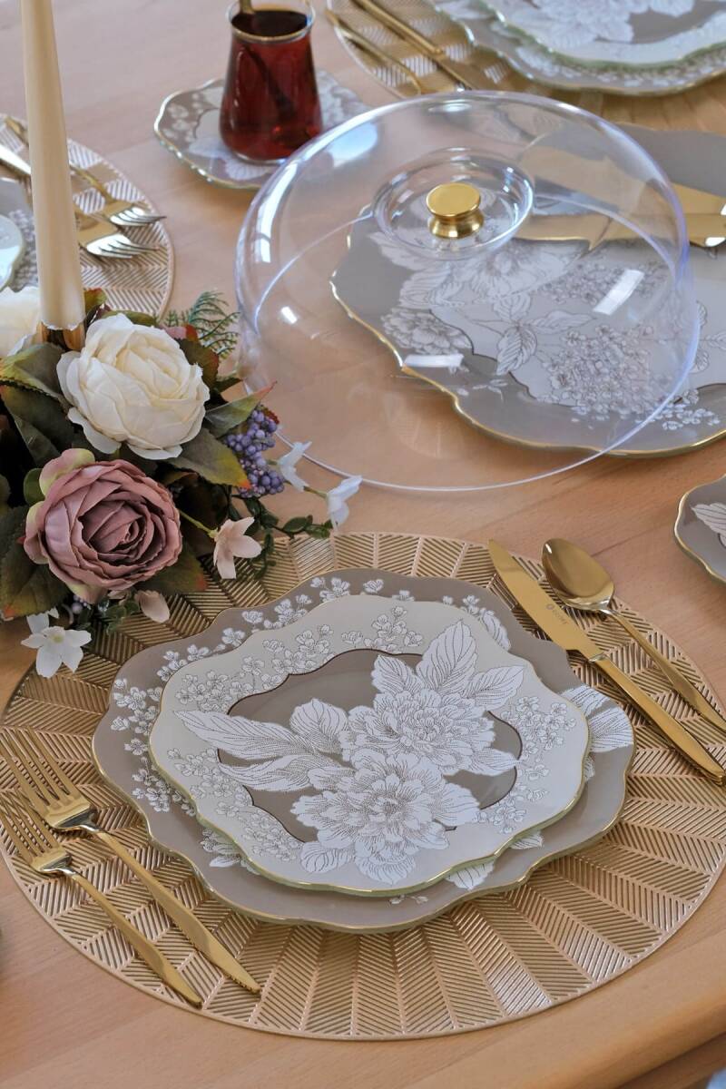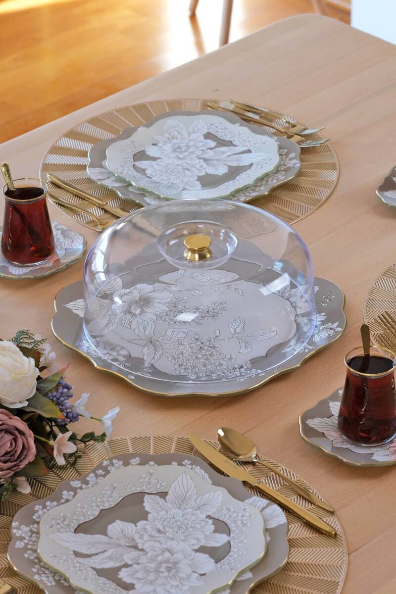 - 1 adet 31cm altın yaldızlı cam kek tepsisi