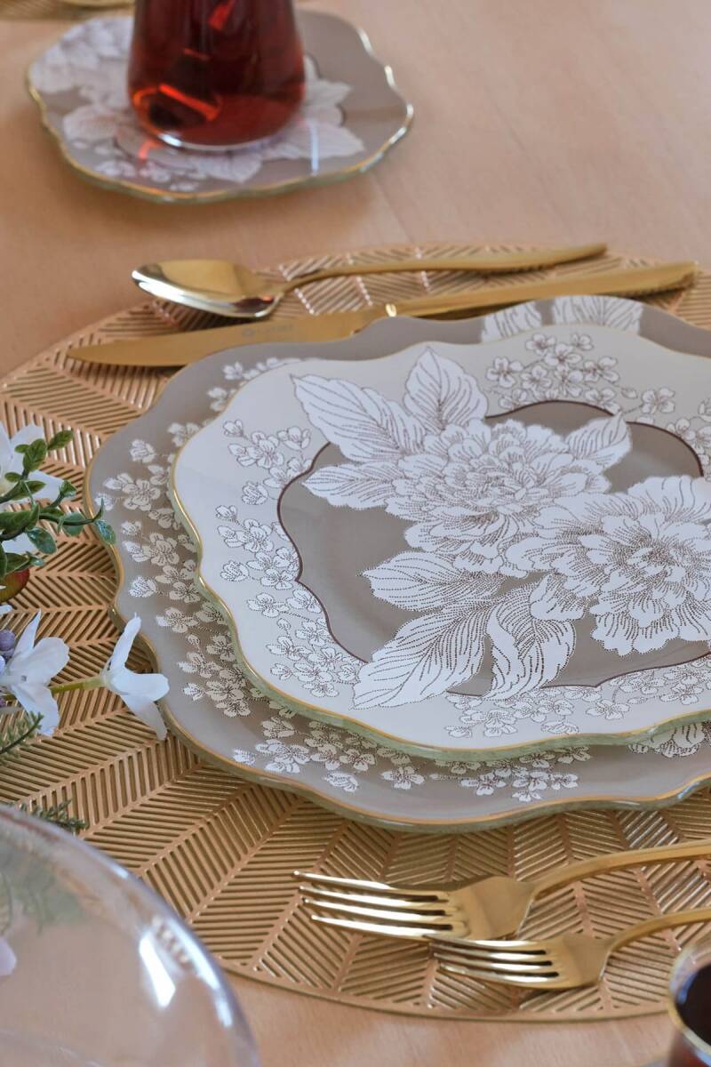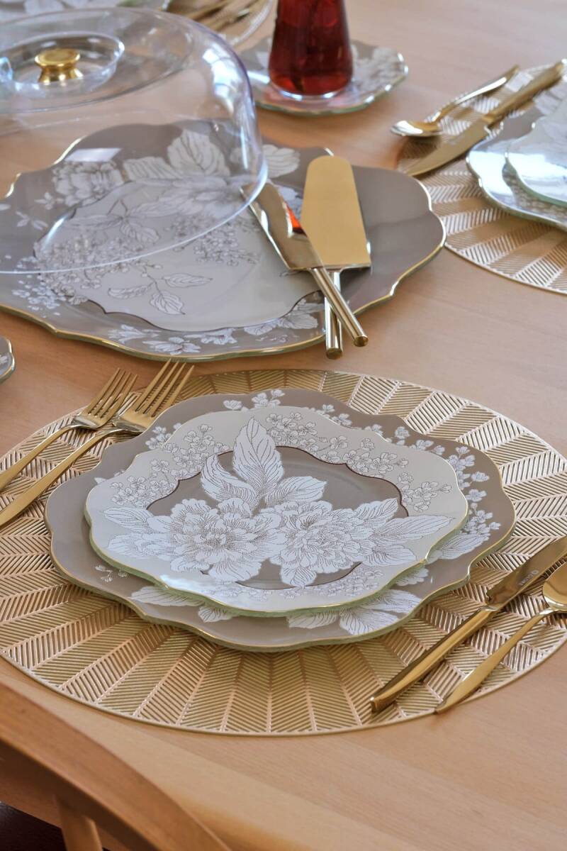 - 6 adet 21cm altın yaldızlı cam pasta tabağı