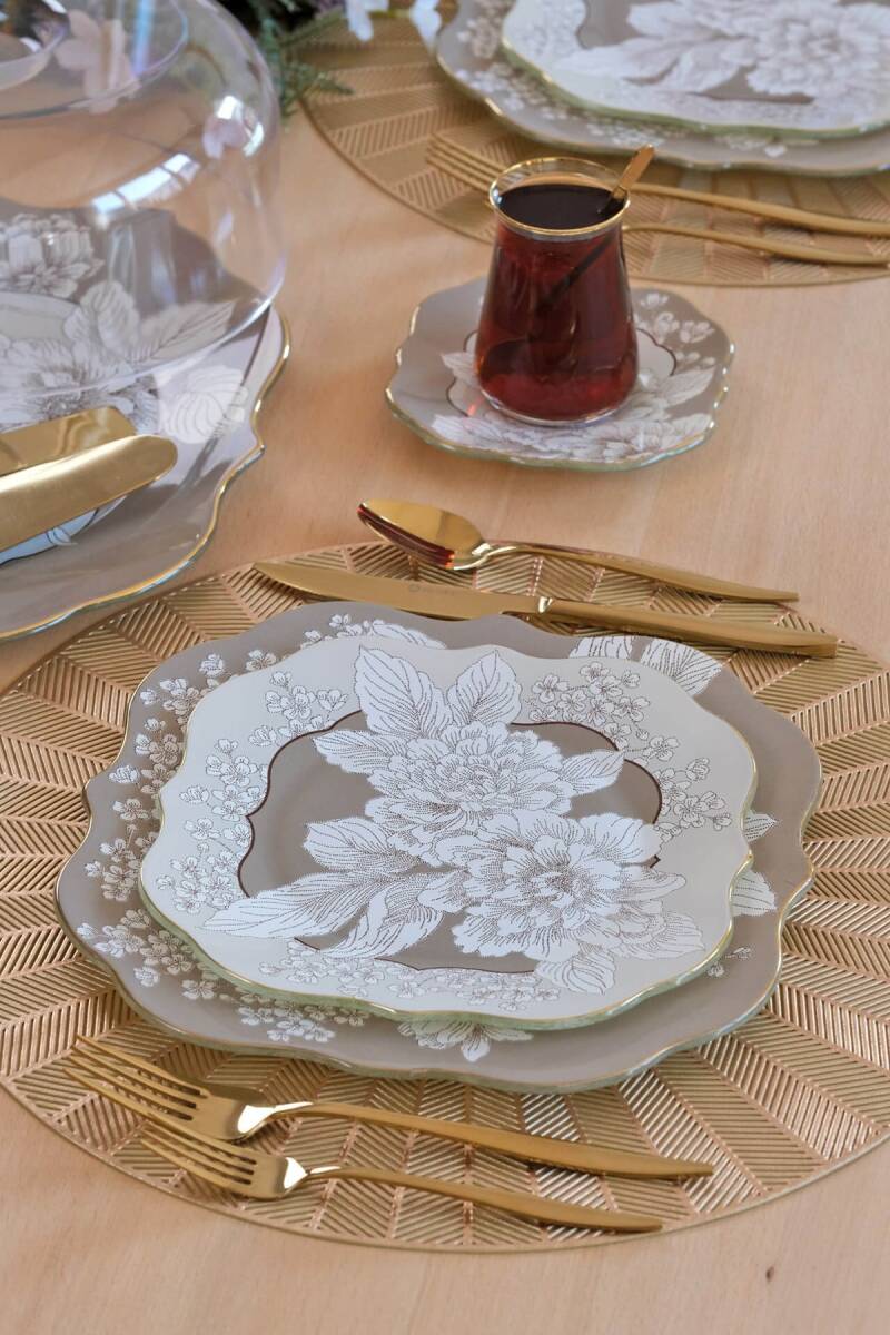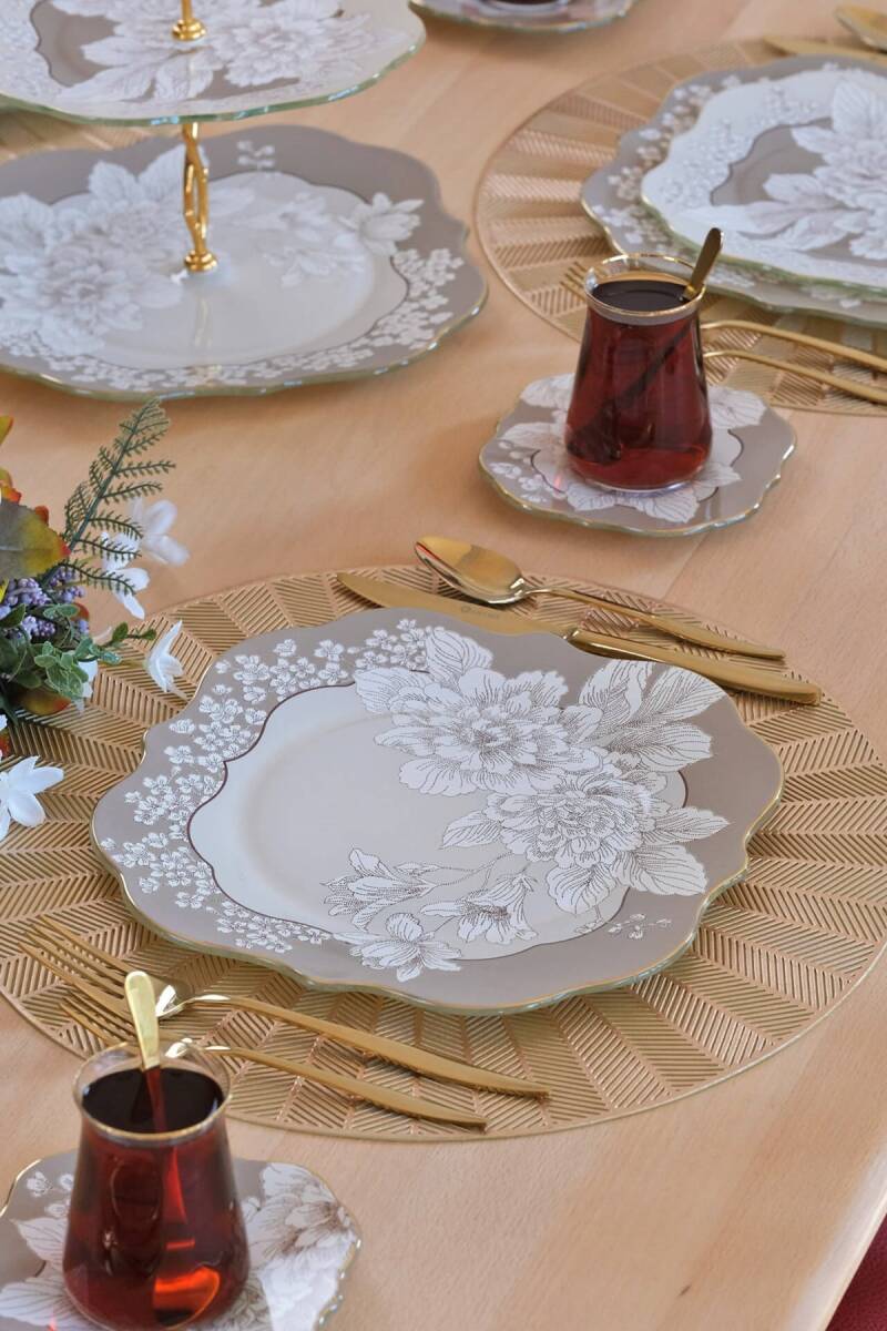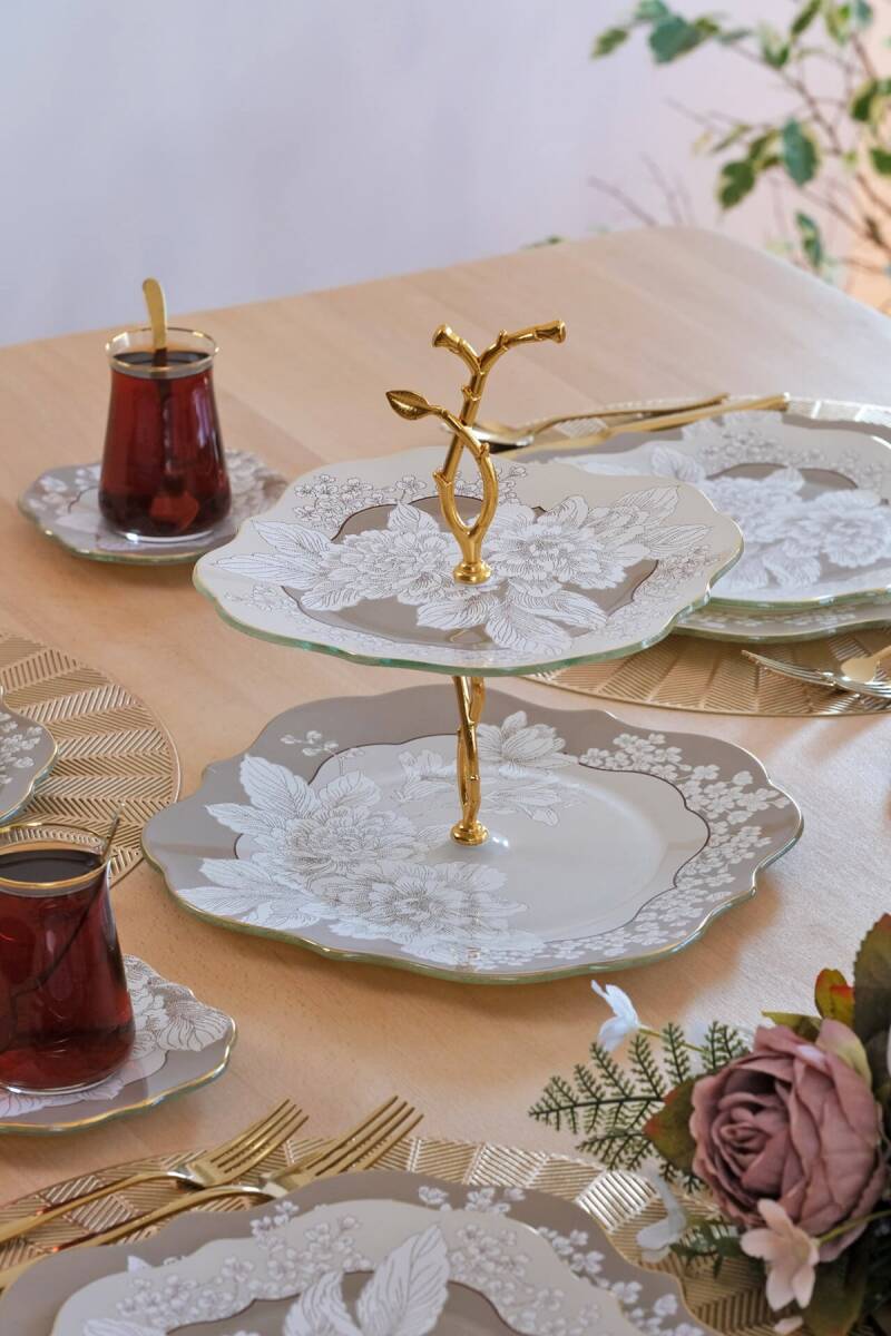 Glore Belize Altın Yaldızlı 6 Kişilik 34 Parça Pasta Servis Takımı