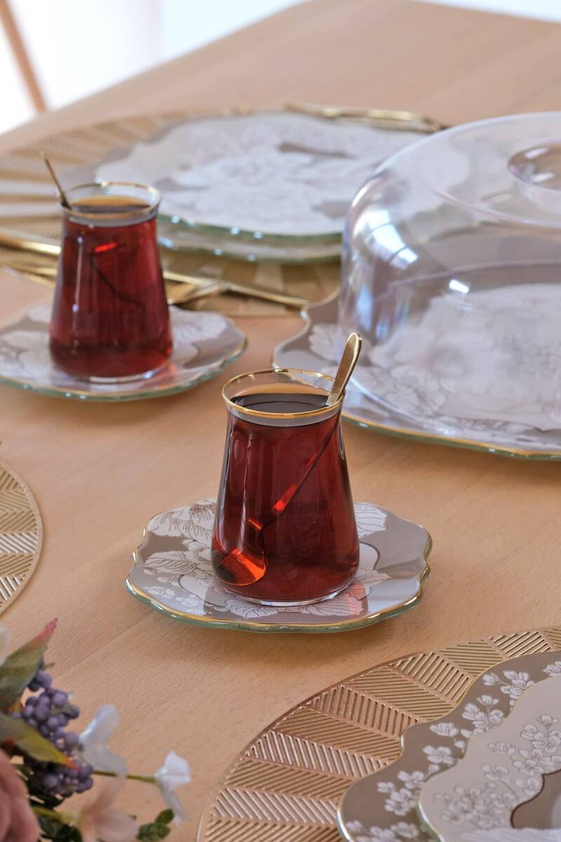 - 6 adet altın yaldızlı cam çay bardağı