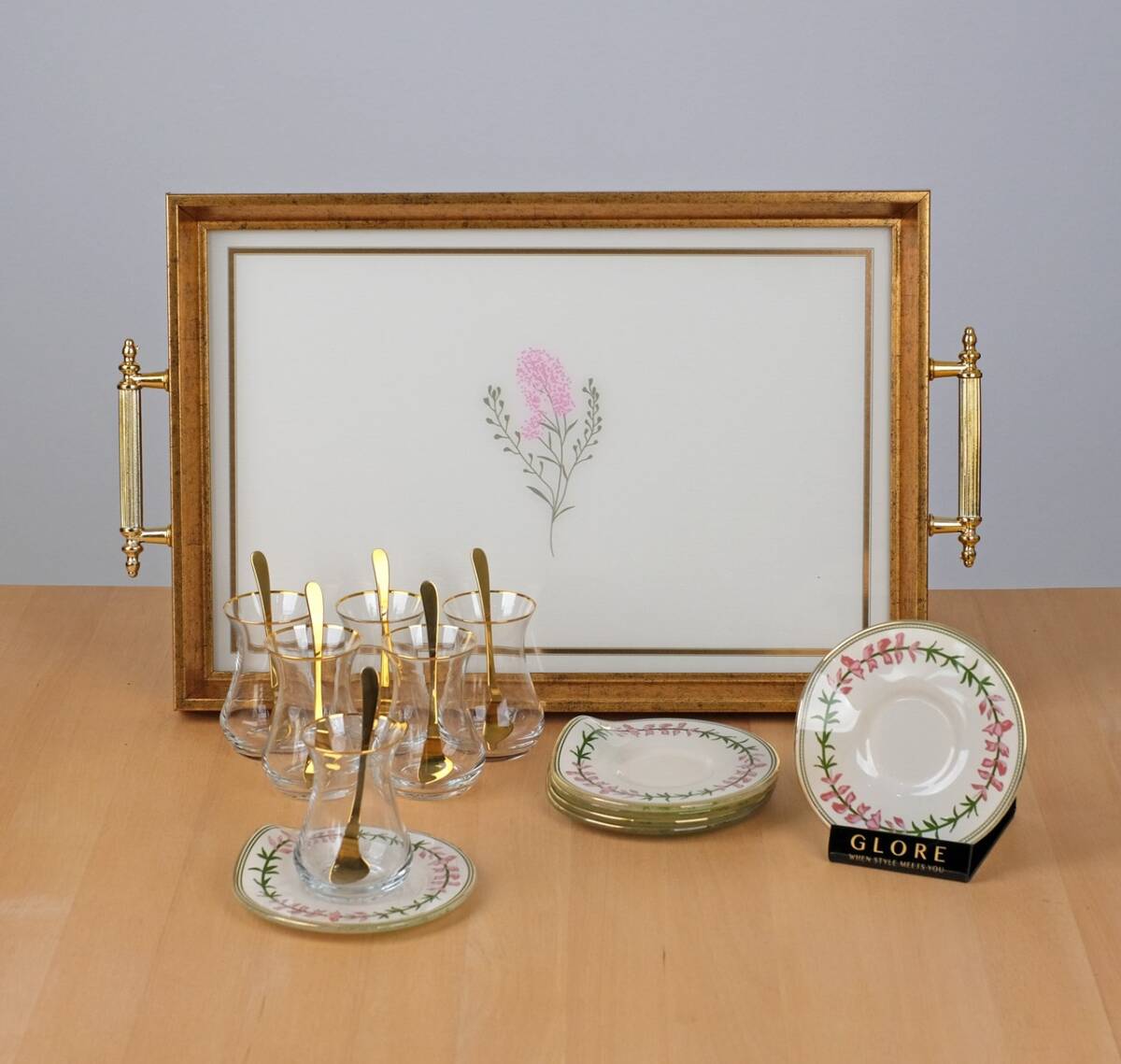 Glore Crocus 19 Parça 6 Kişilik Altın yaldızlı Tepsili Çay Seti