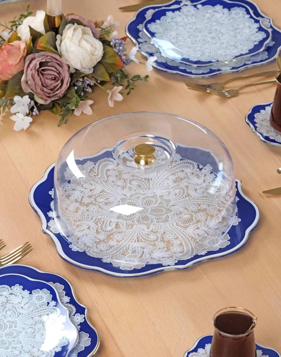 Glore Dentelle Altın Yaldızlı Cam Kek Fanusu