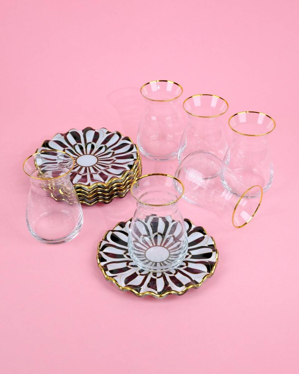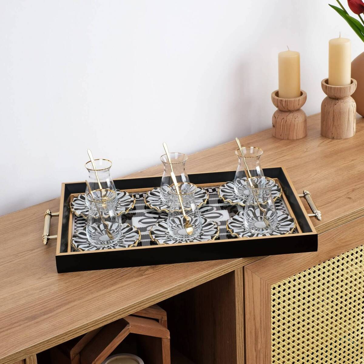 Glore Destina Siyah 6 Kişilik 19 Parça Tepsili Çay Takımı