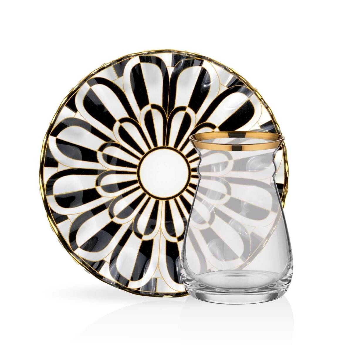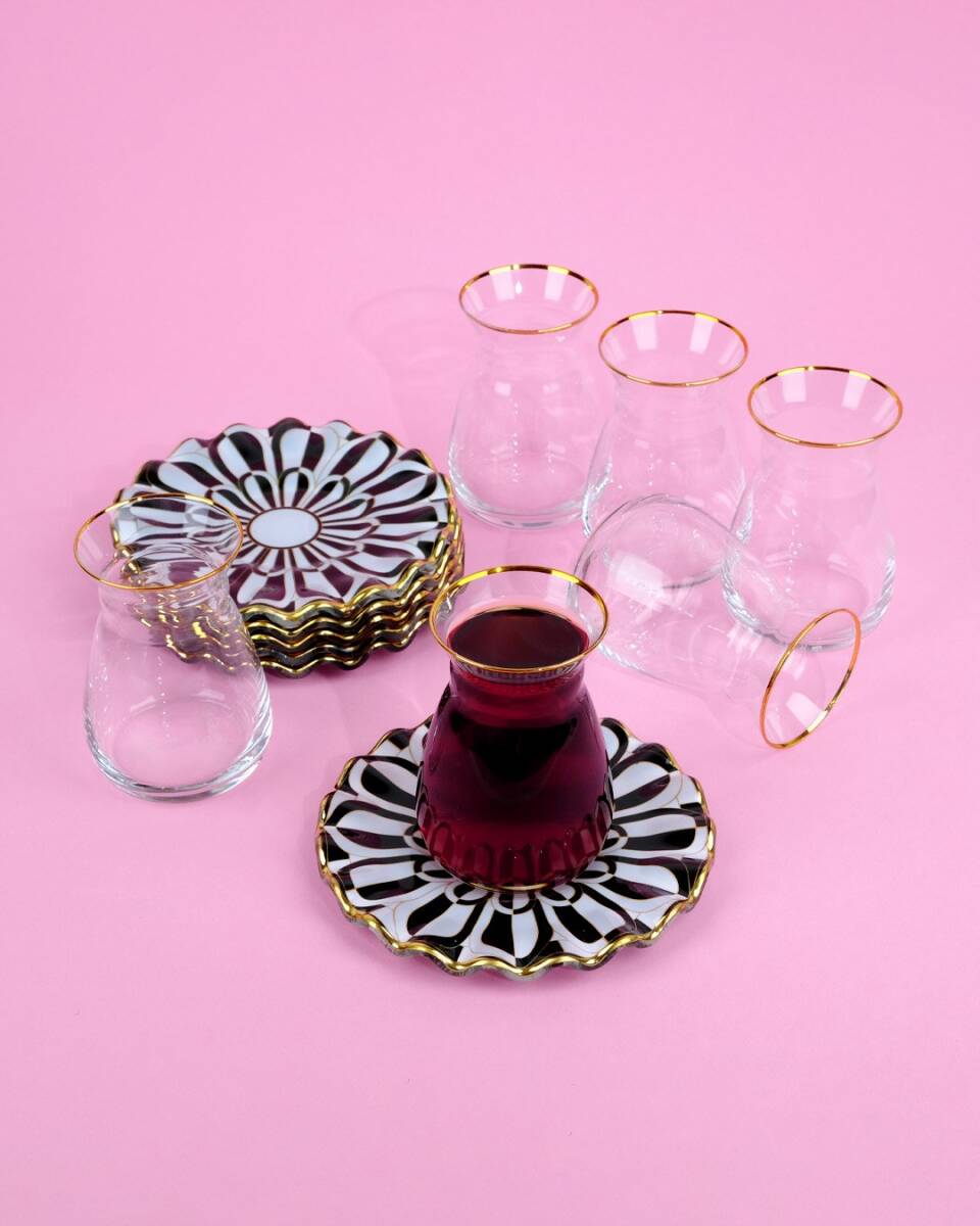 Glore Destina Siyah 12 Parça 6 Kişilik Altın Yaldızlı Cam Çay Bardağı Takımı
