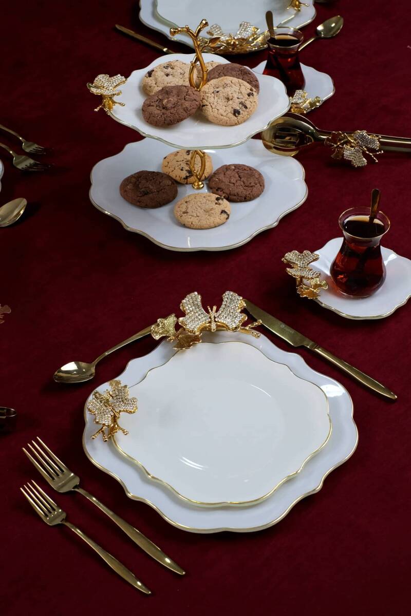 Glore Dolmabahçe Lotus Taşlı Kelebek Altın Yaldızlı Cam Kurabiyelik