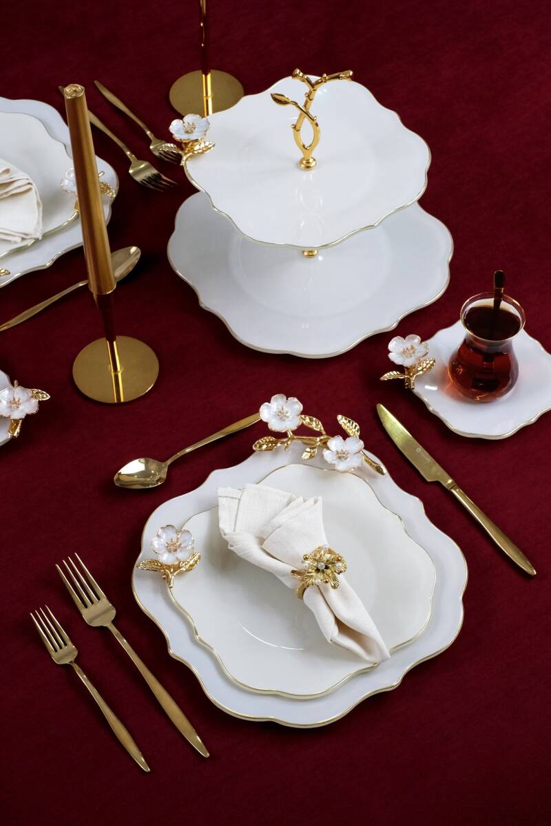 Glore Dolmabahçe Lotus Tomucuk Çiçek Sedef Altın Yaldızlı Cam Kurabiyelik