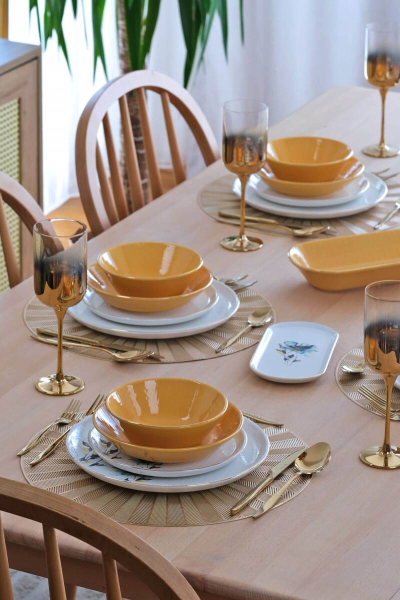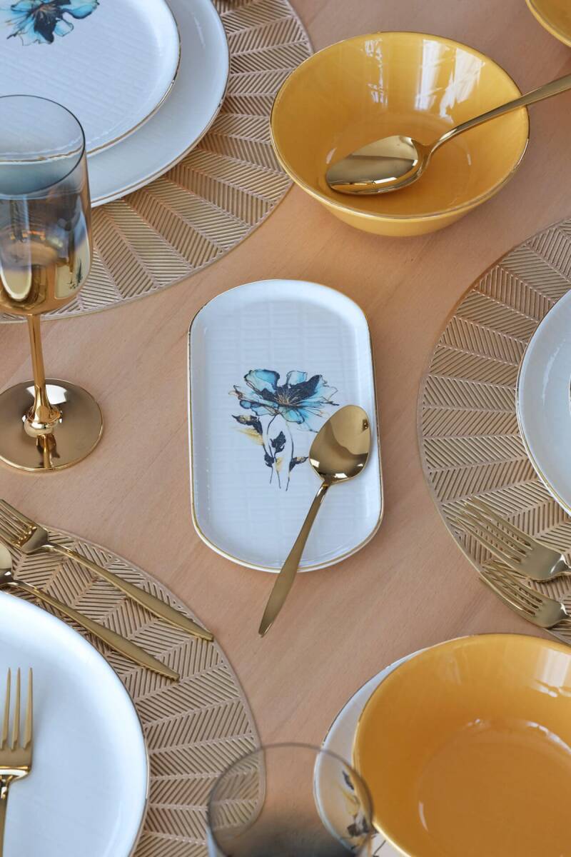 Glore Asya Blue Flower 27 Parça 6 Kişilik Altın Yaldızlı Seramik Yemek Takımı