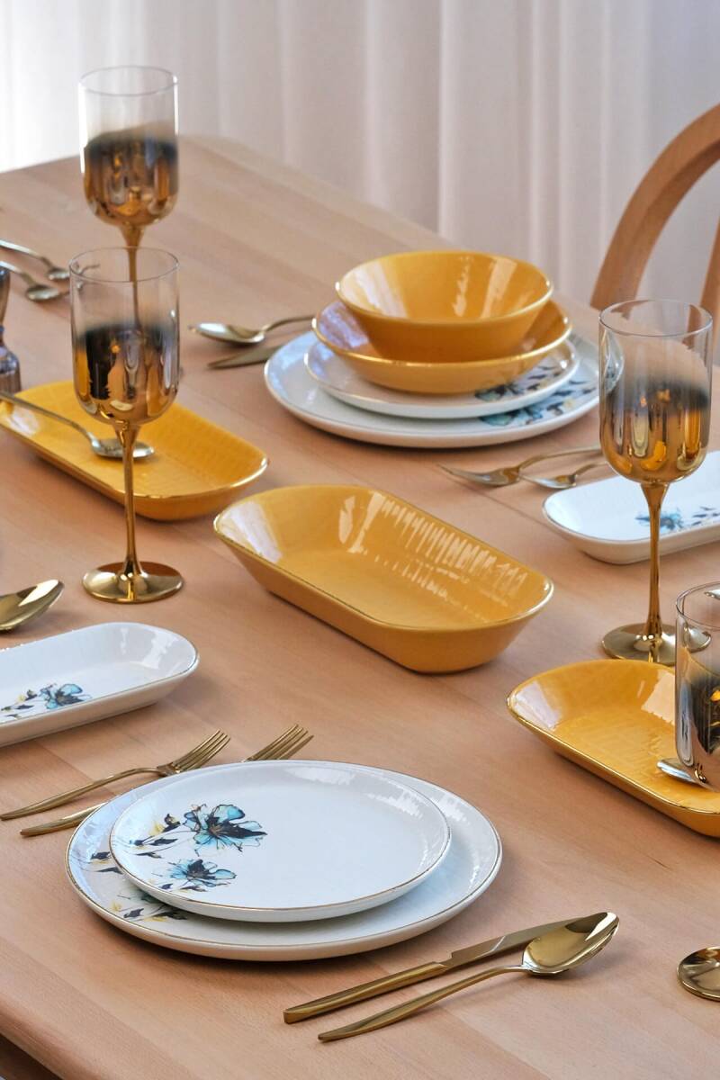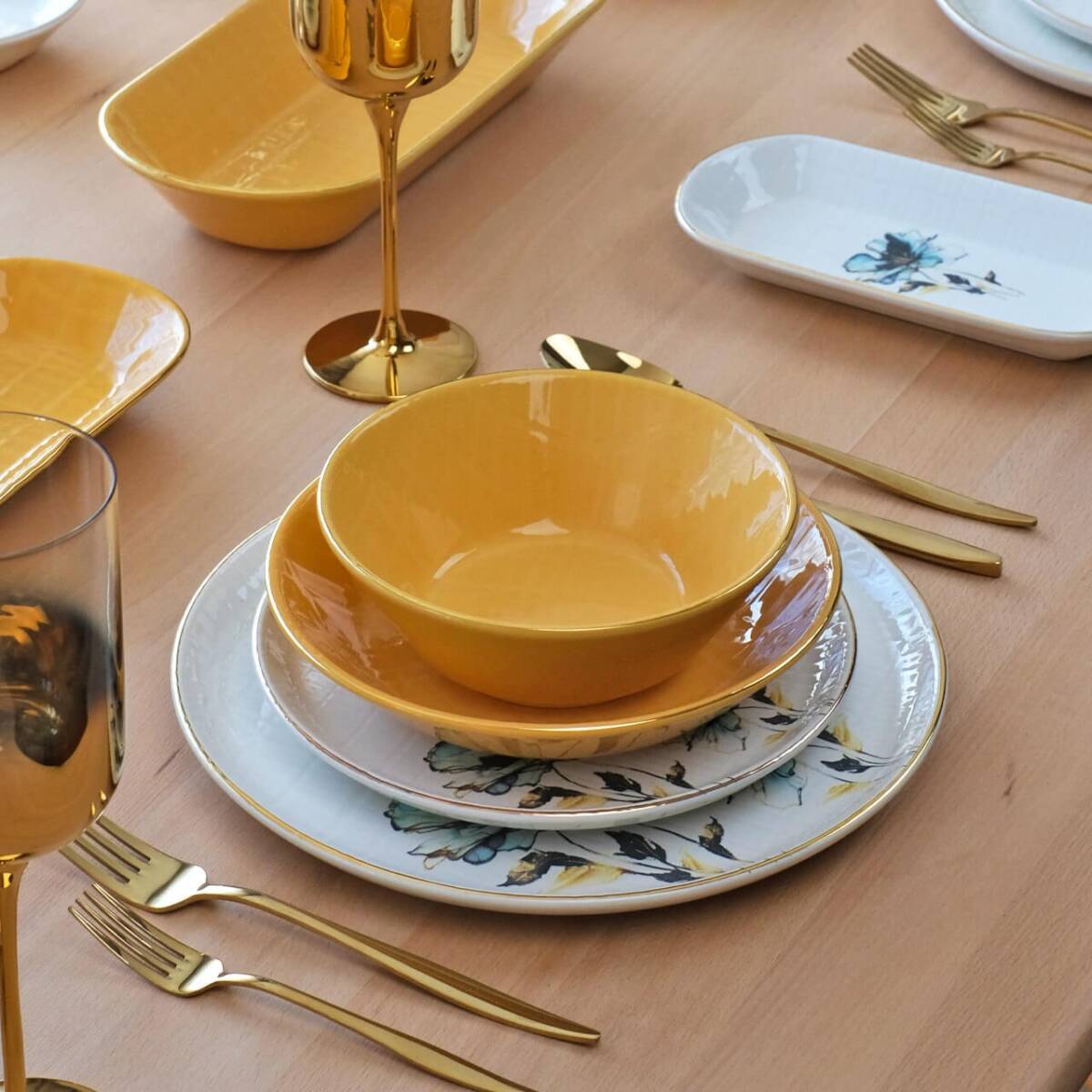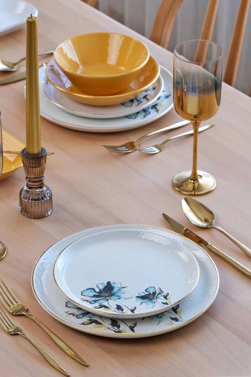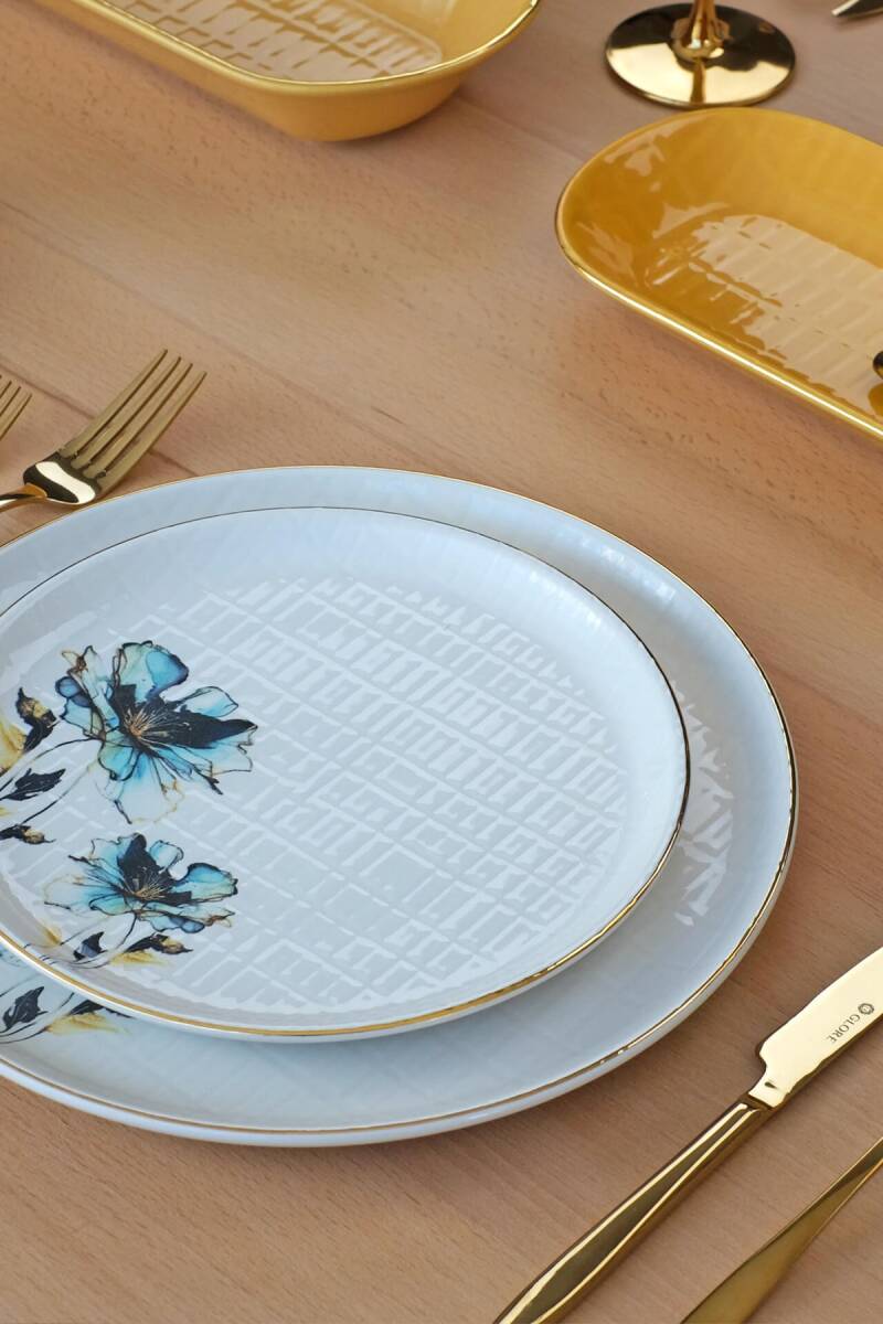 Glore Asya Blue Flower 31 Parça 6 Kişilik Altın Yaldızlı Seramik Yemek Takımı