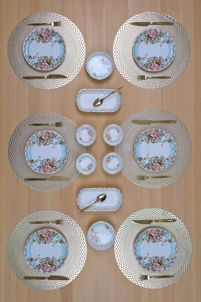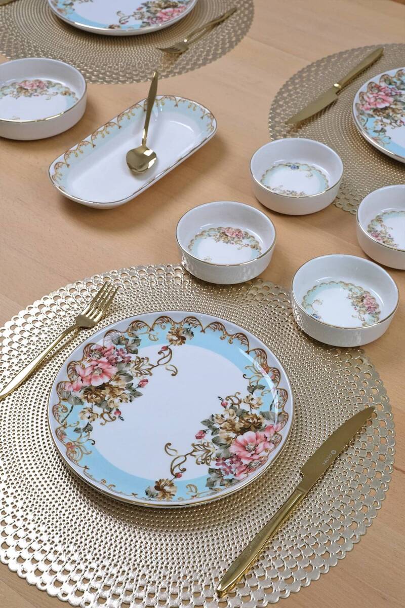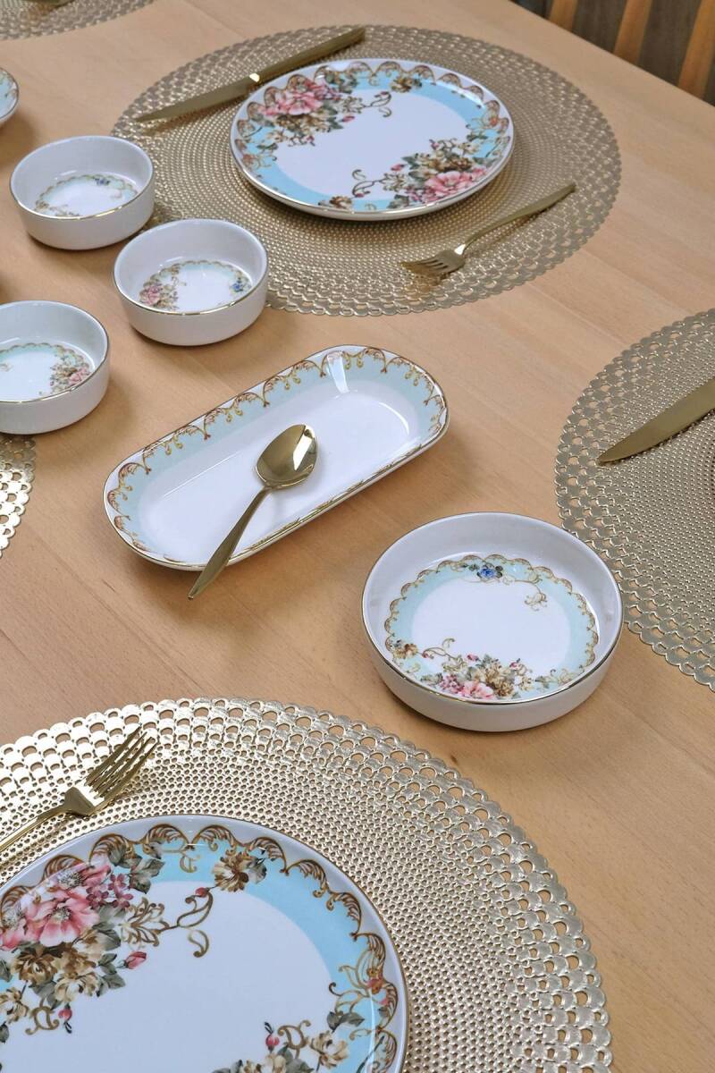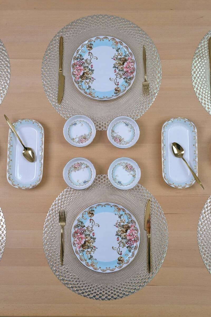 Glore Asya Roomy 14 Parça 6 Kişilik Altın Yaldızlı Kahvaltı Takımı