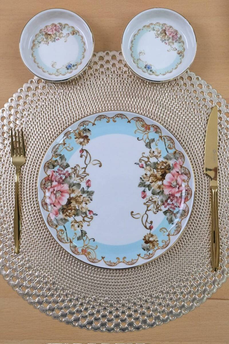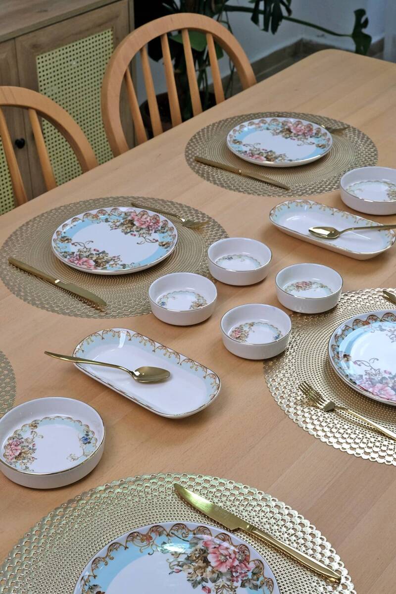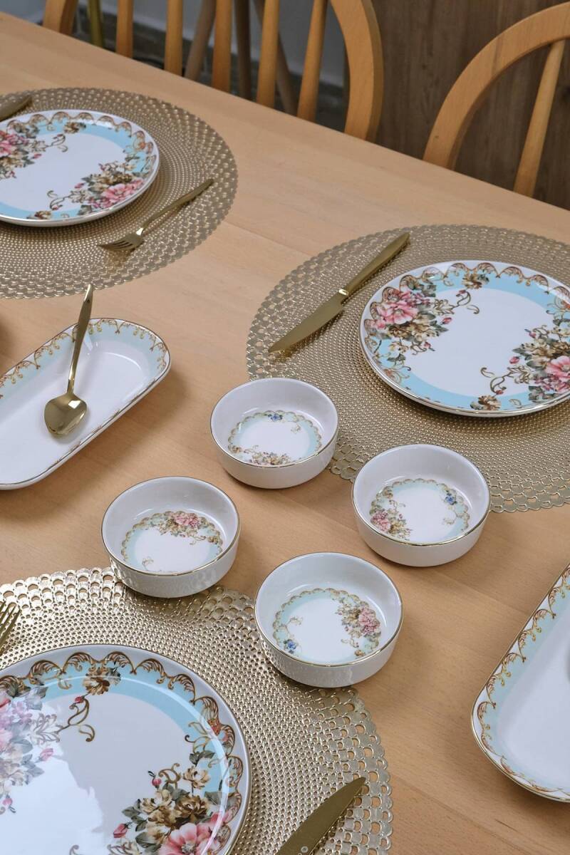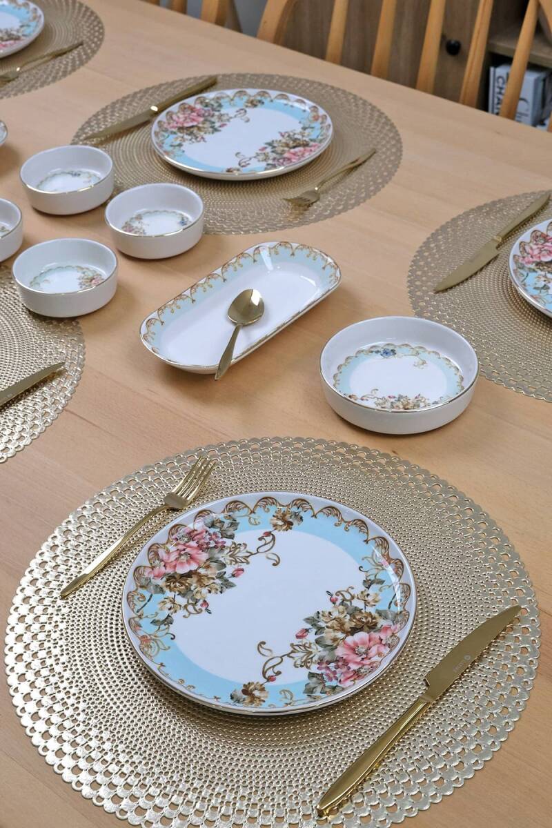 Glore Asya Roomy 14 Parça 6 Kişilik Altın Yaldızlı Kahvaltı Takımı