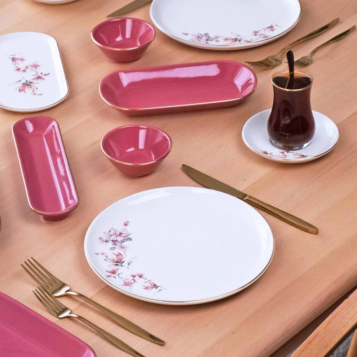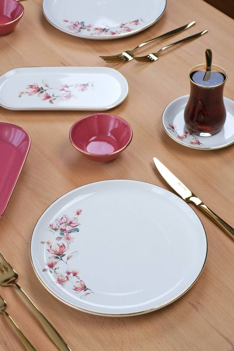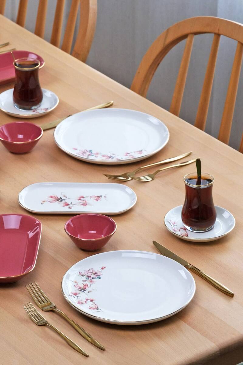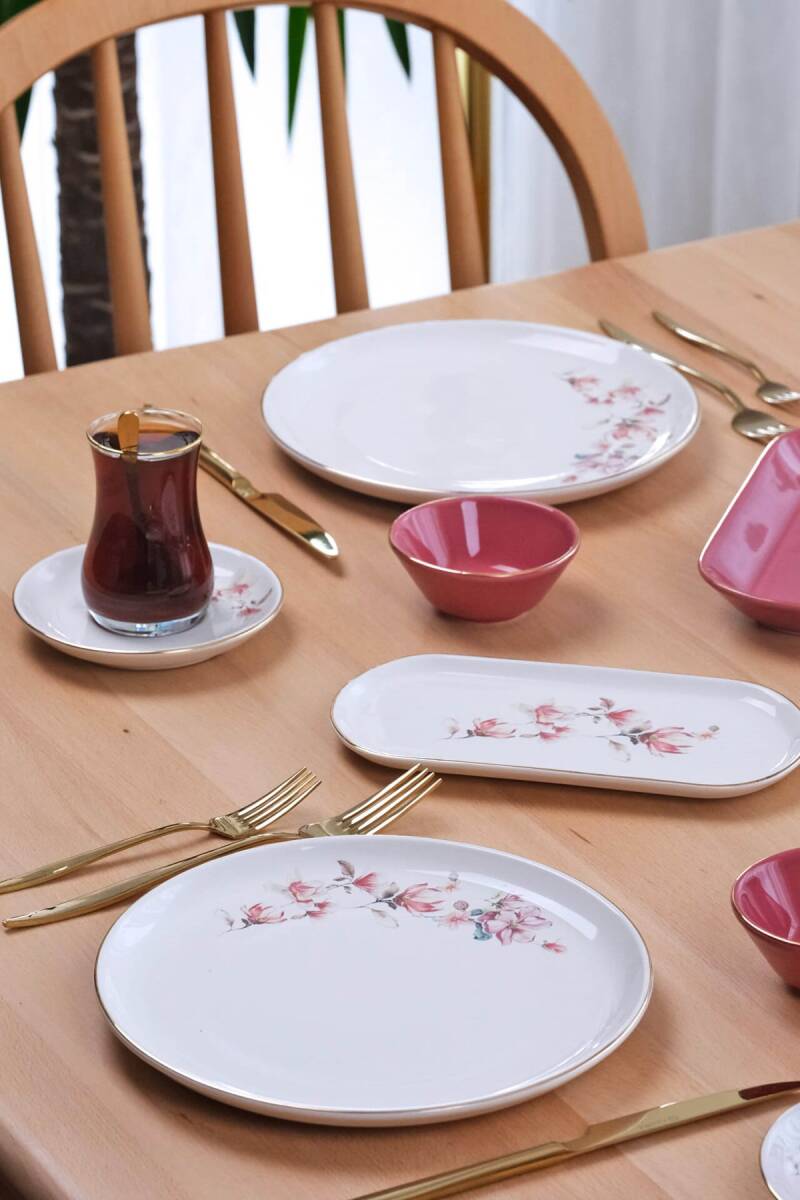 Glore Asya Spring 41 Parça 6 Kişilik Altın Yaldızlı Seramik Kahvaltı Takımı
