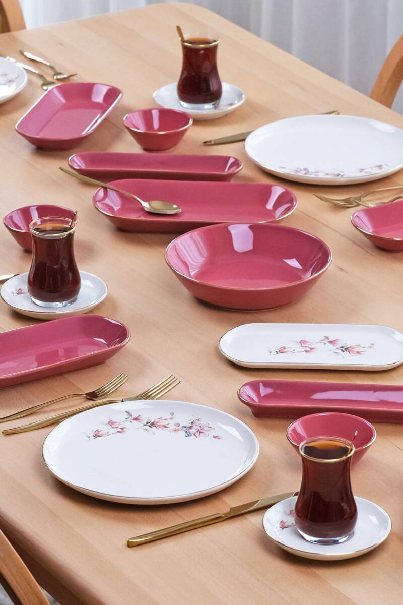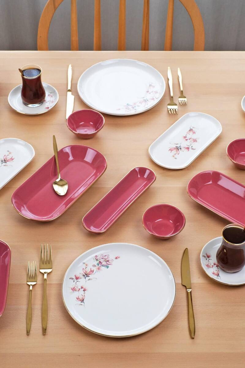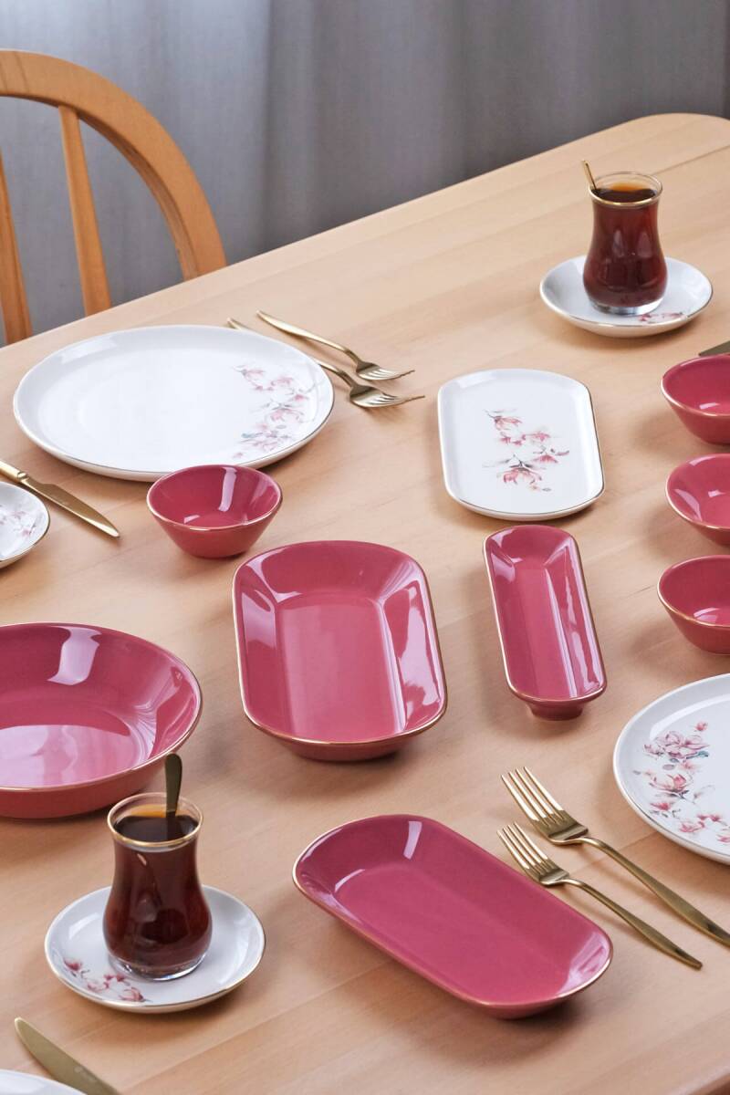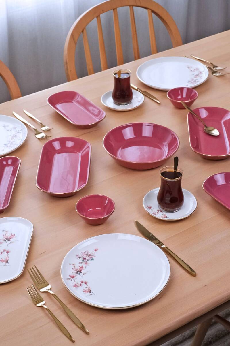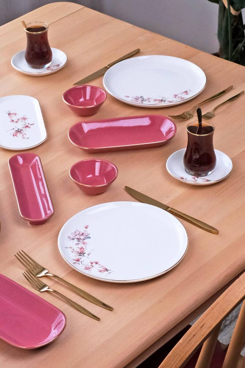Glore Asya Spring 41 Parça 6 Kişilik Altın Yaldızlı Seramik Kahvaltı Takımı