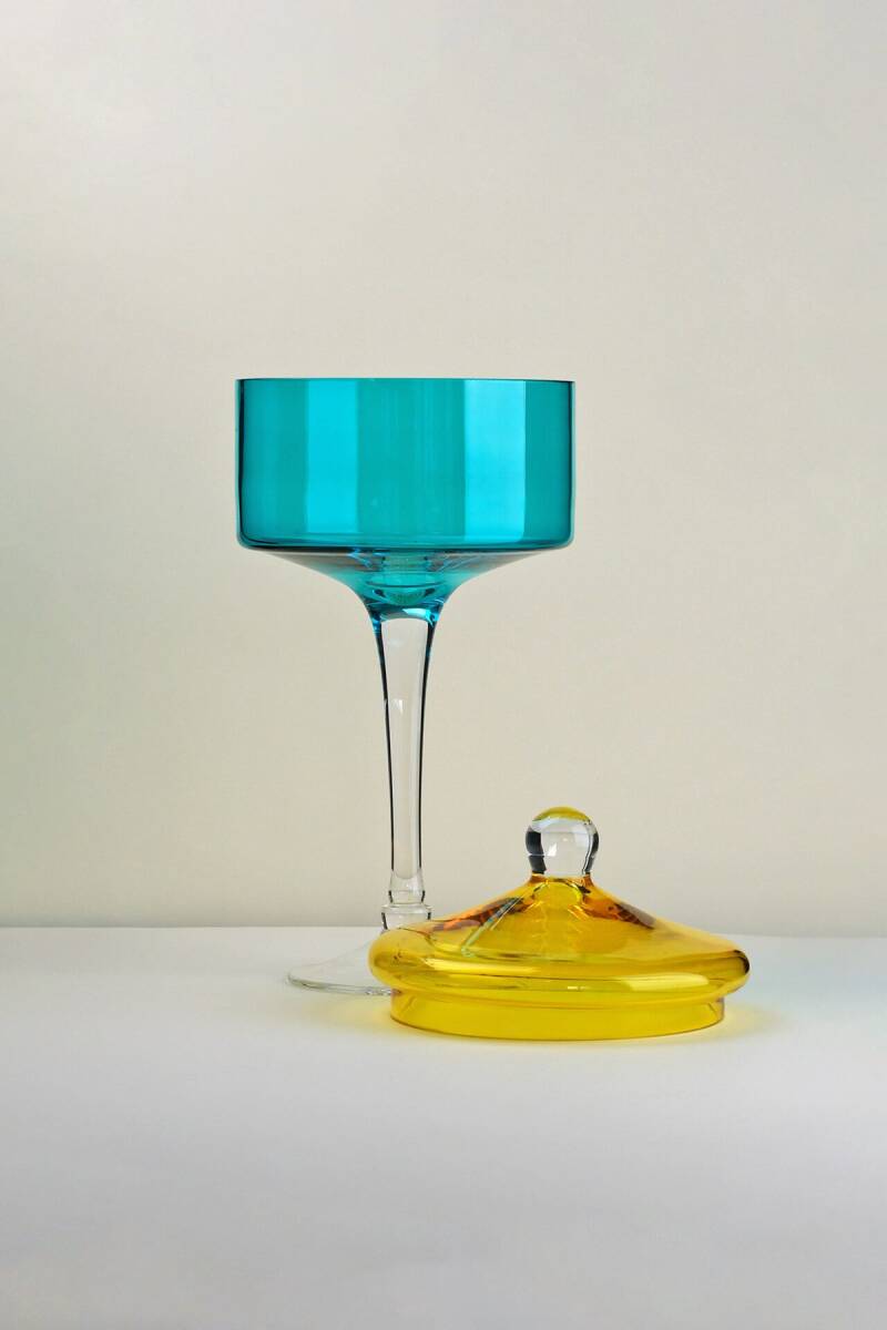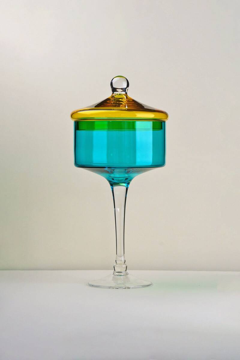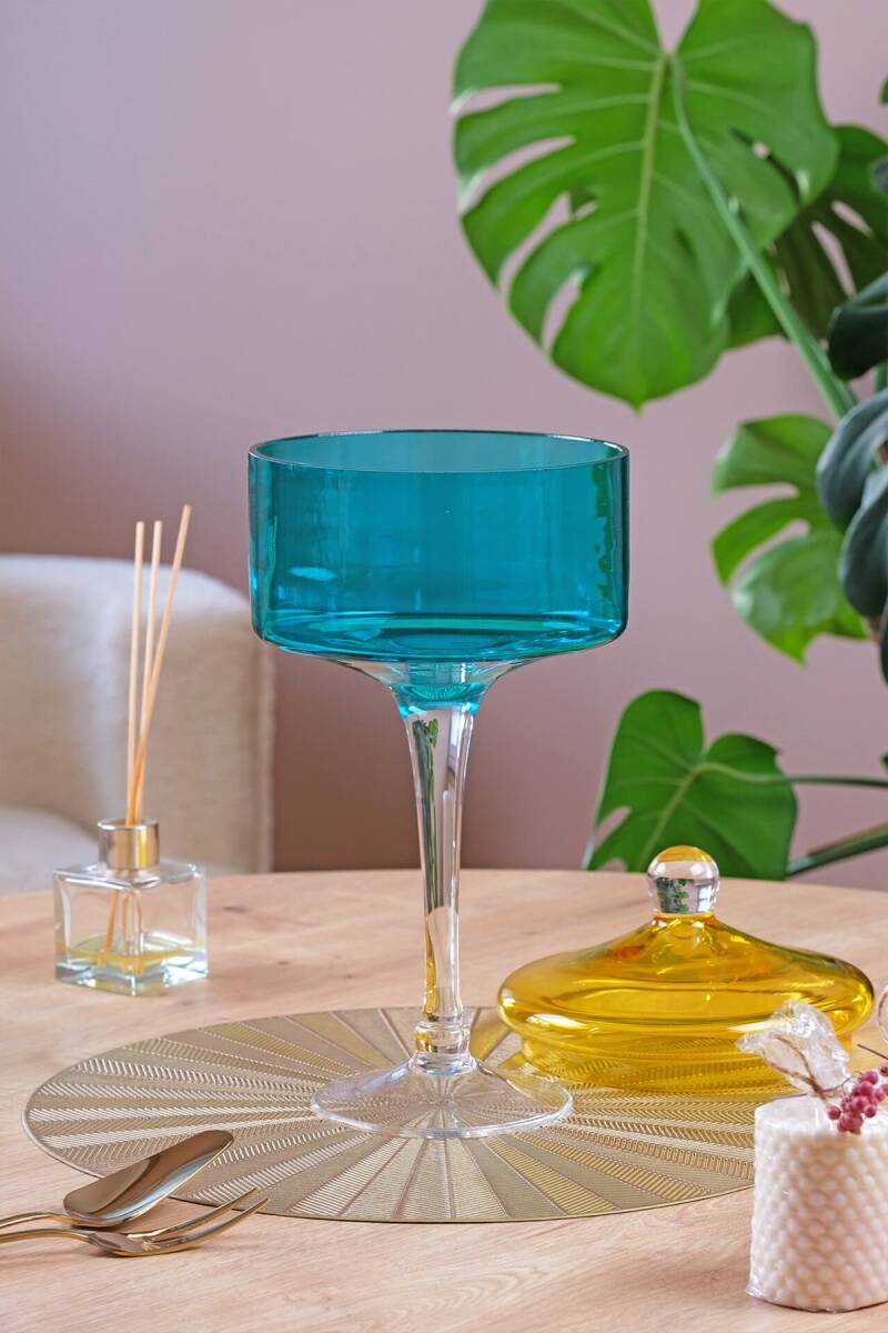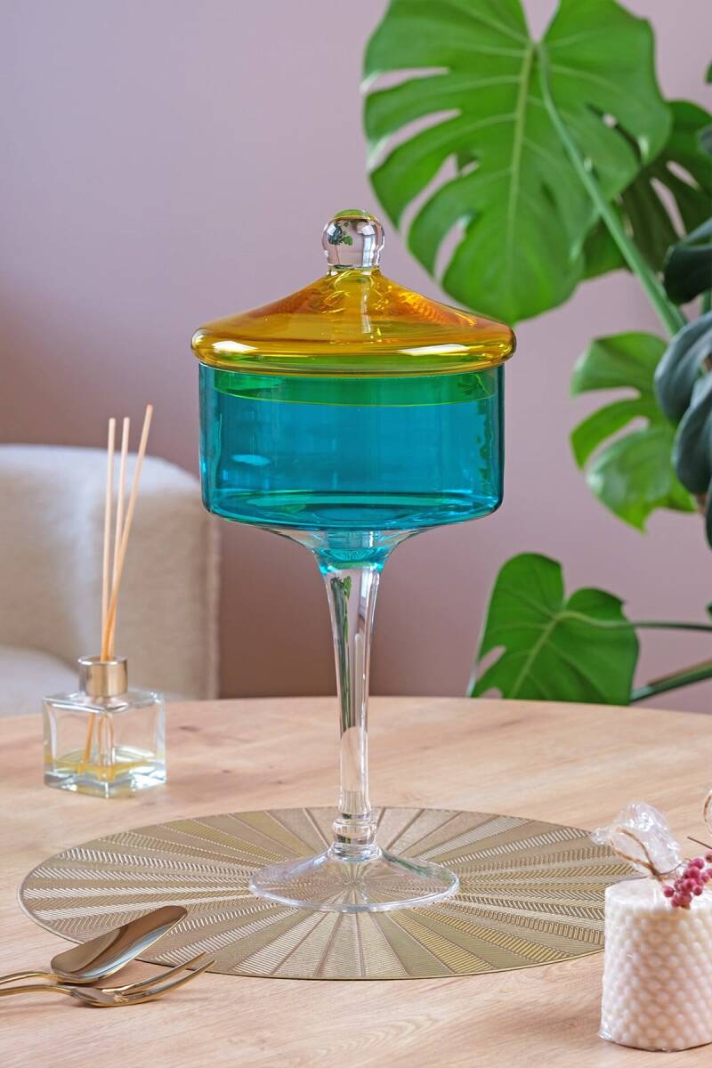 Glore Ayaklı Sunum Tabağı Turkuaz - Sarı