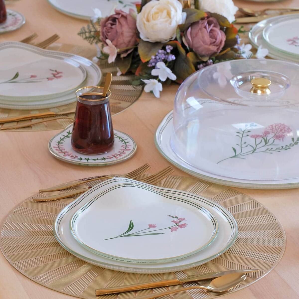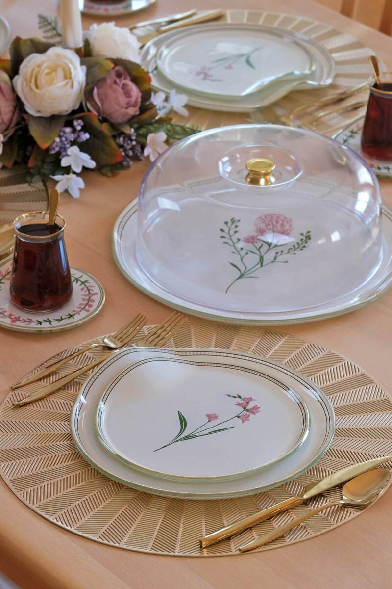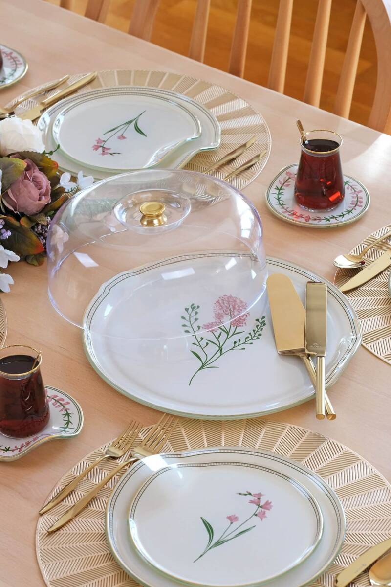 - 1 adet 31cm altın yaldızlı cam kek tepsisi