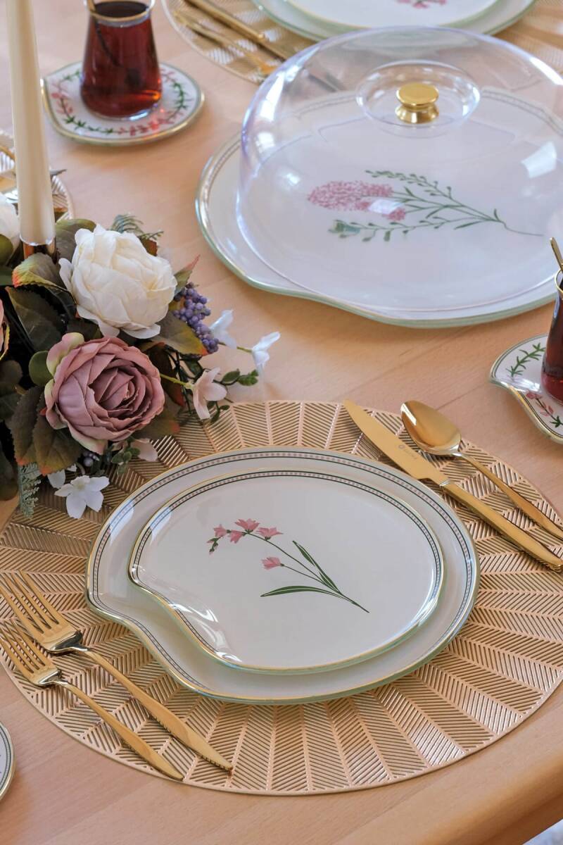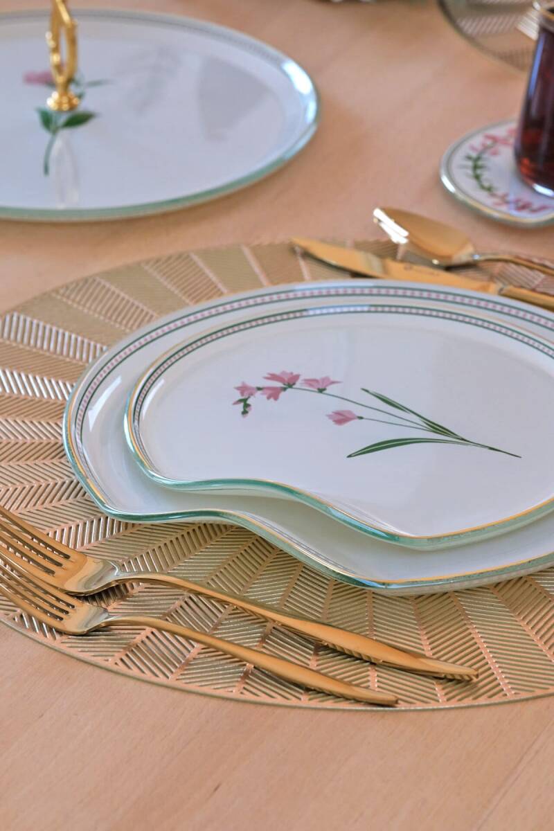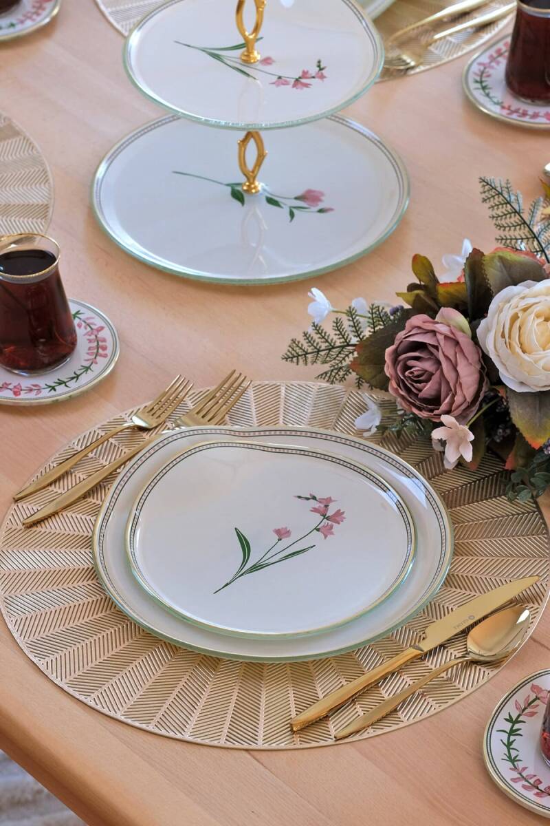 Glore Crocus Altın Yaldızlı 6 Kişilik 34 Parça Pasta Servis Takımı