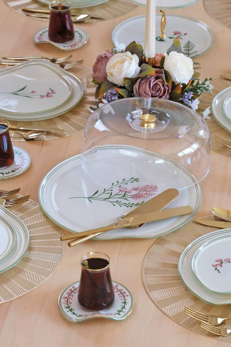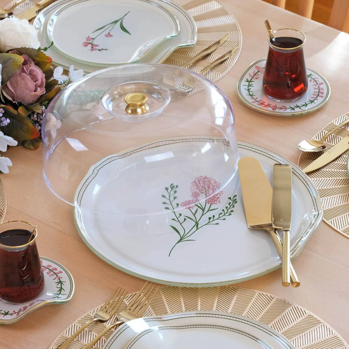 - 1 adet 31cm altın yaldızlı cam kek tepsisi