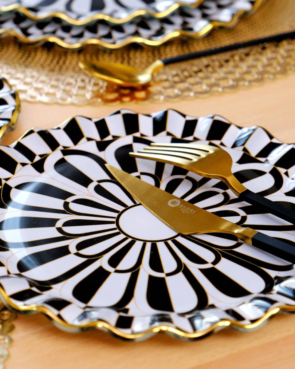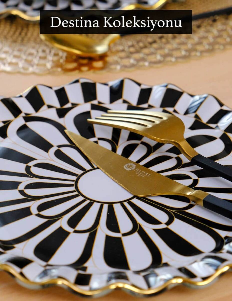Glore  Destina Siyah Altın Yaldızlı 6 Kişilik 26 Parça Pasta Takımı