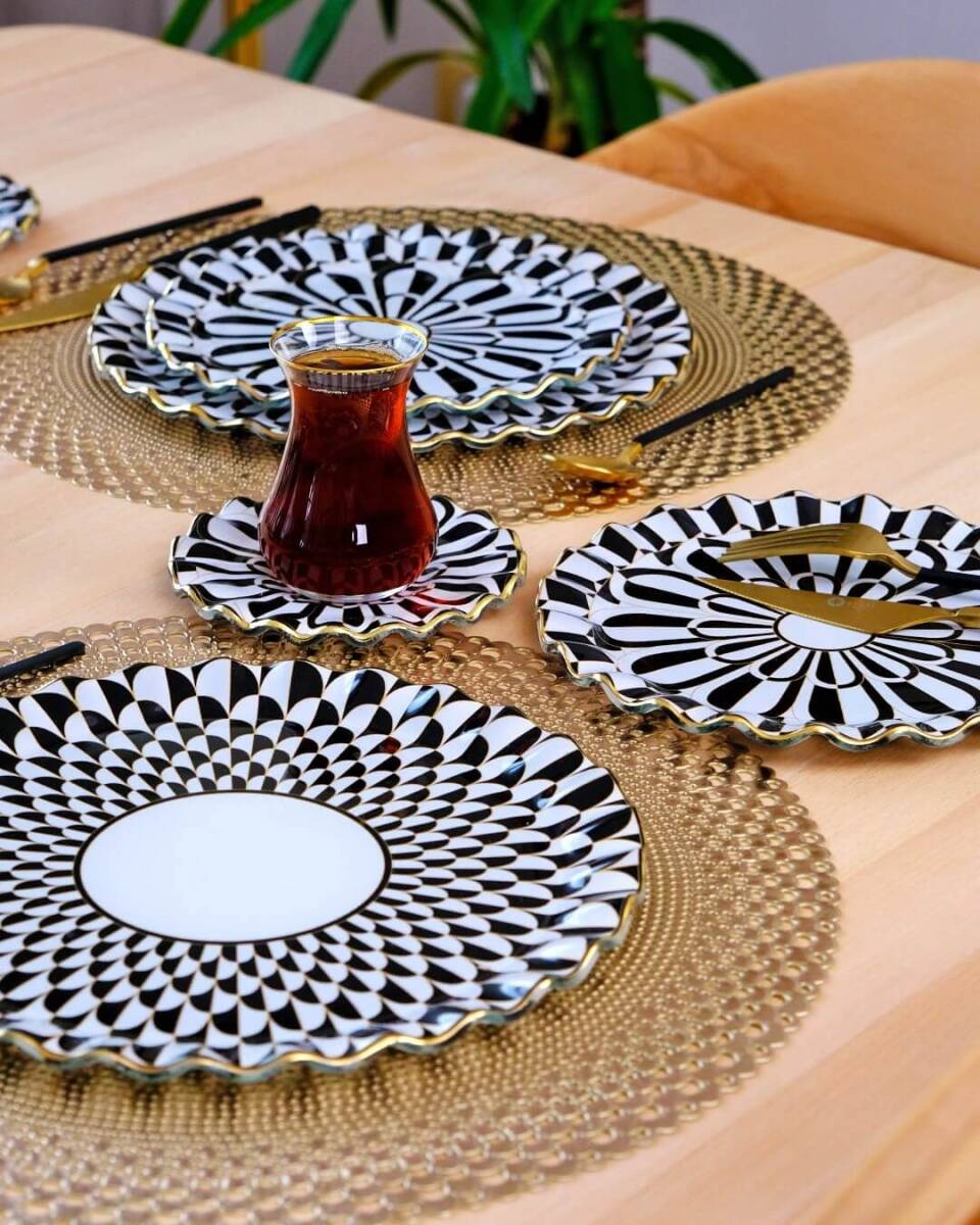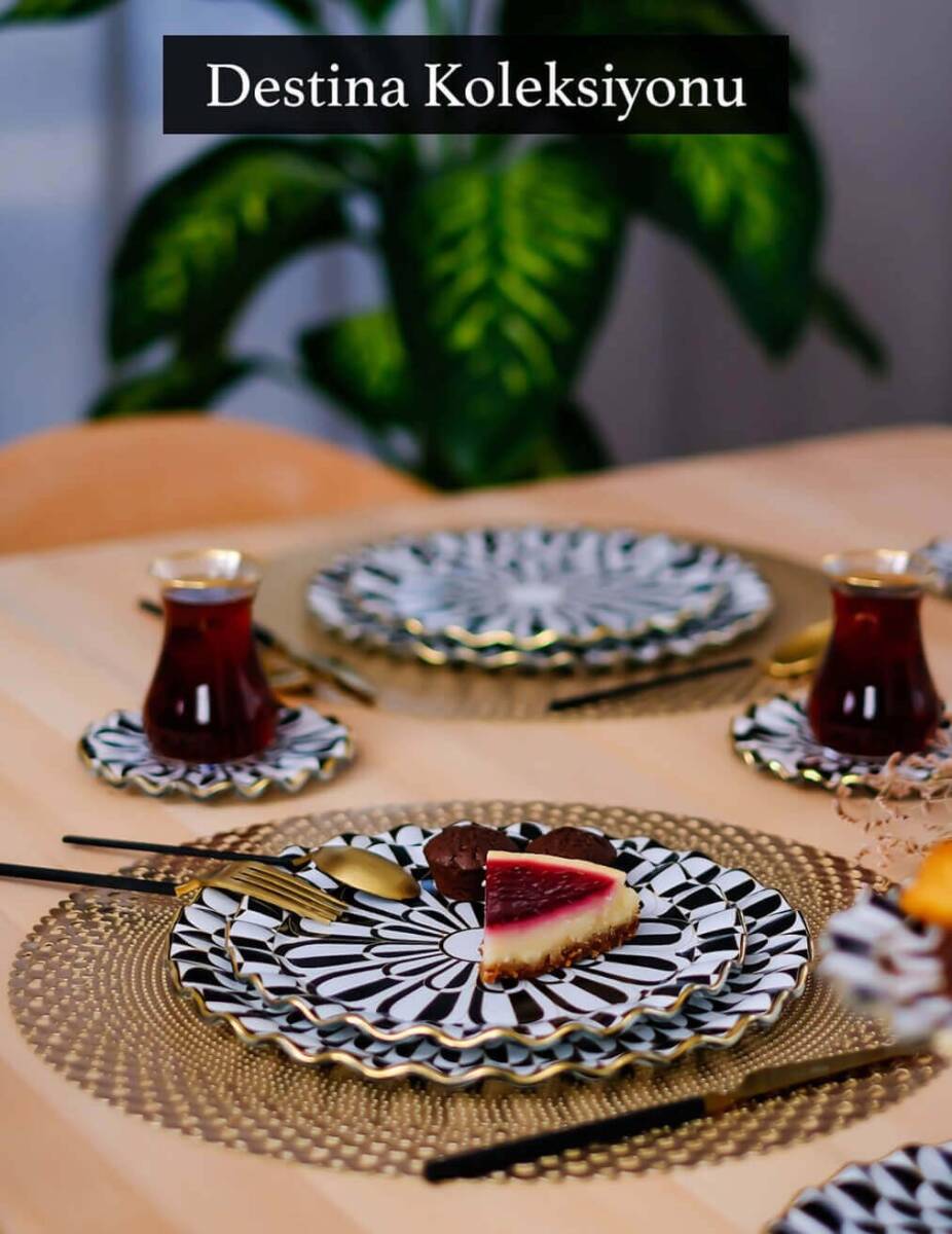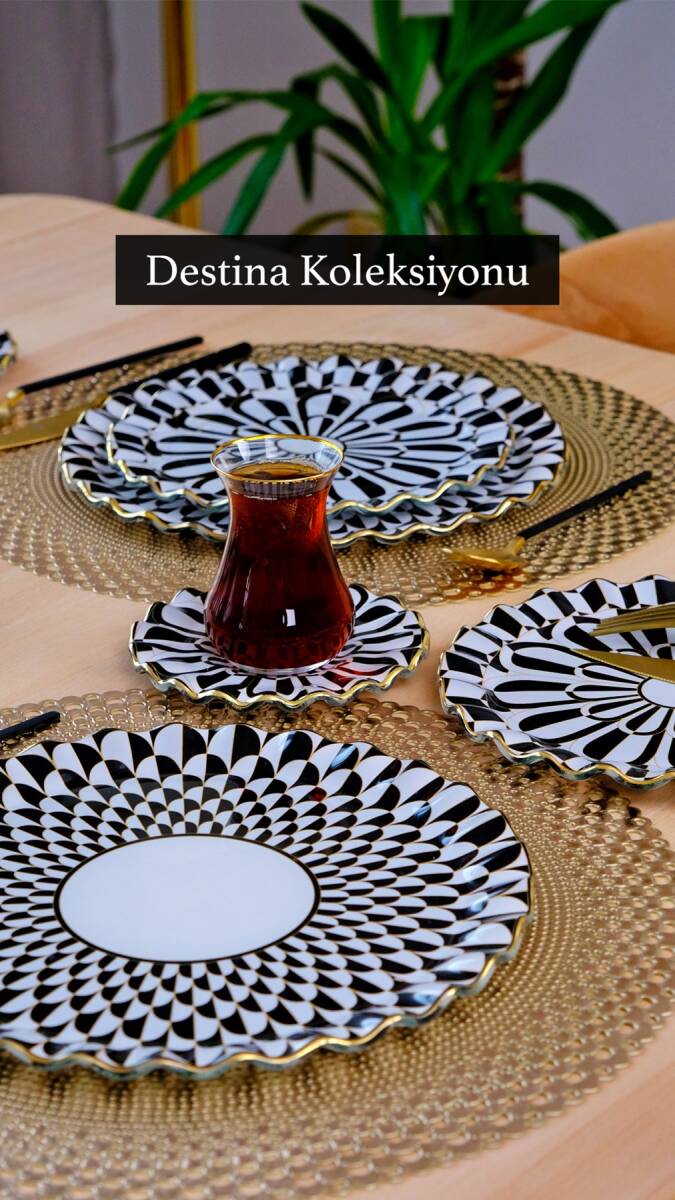 Glore Destina Siyah Altın Yaldızlı 6 Kişilik 26 Parça Pasta Çay İkram Takımı