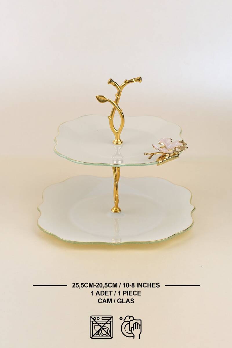 - 1 adet 20,5cm altın yaldızlı cam kurabiyelik tabak