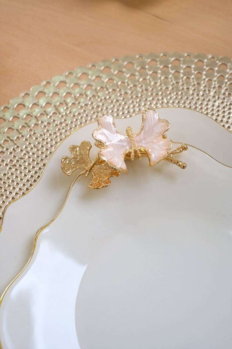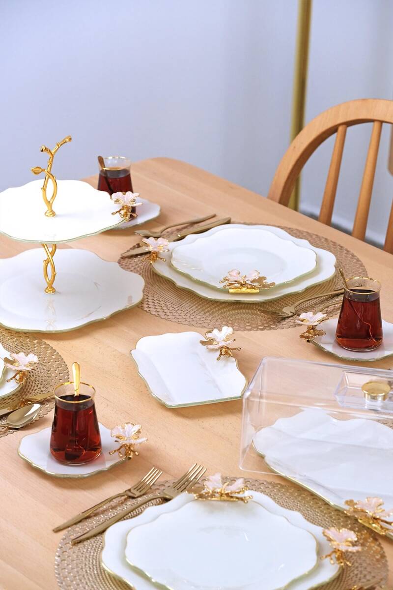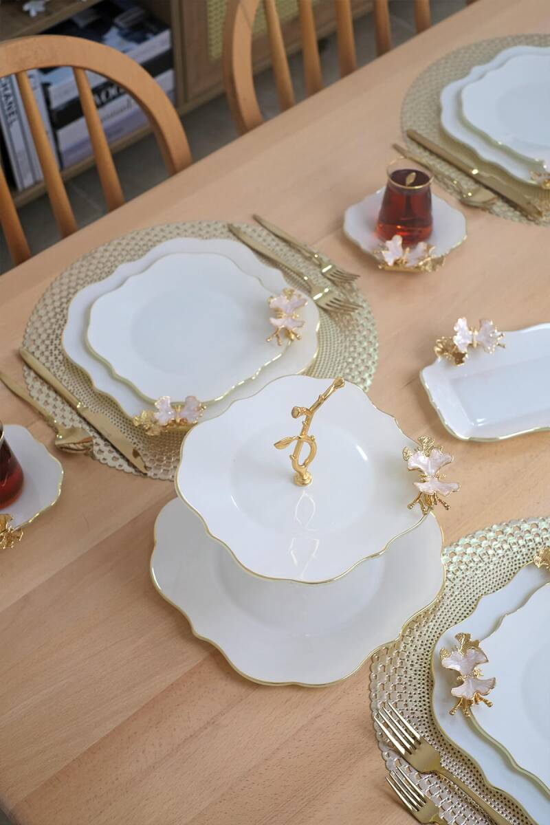 Glore Dolmabahçe Lotus Krem Altın Yaldızlı Cam Kurabiyelik