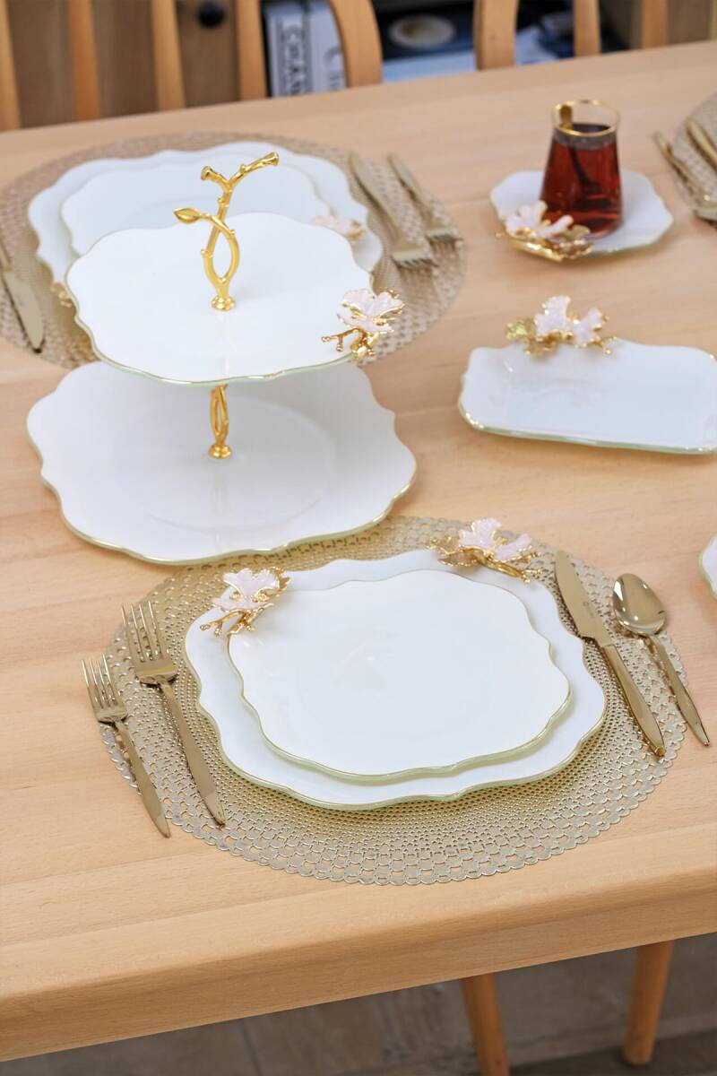 - 1 adet 25,5cm altın yaldızlı cam kurabiyelik tabak