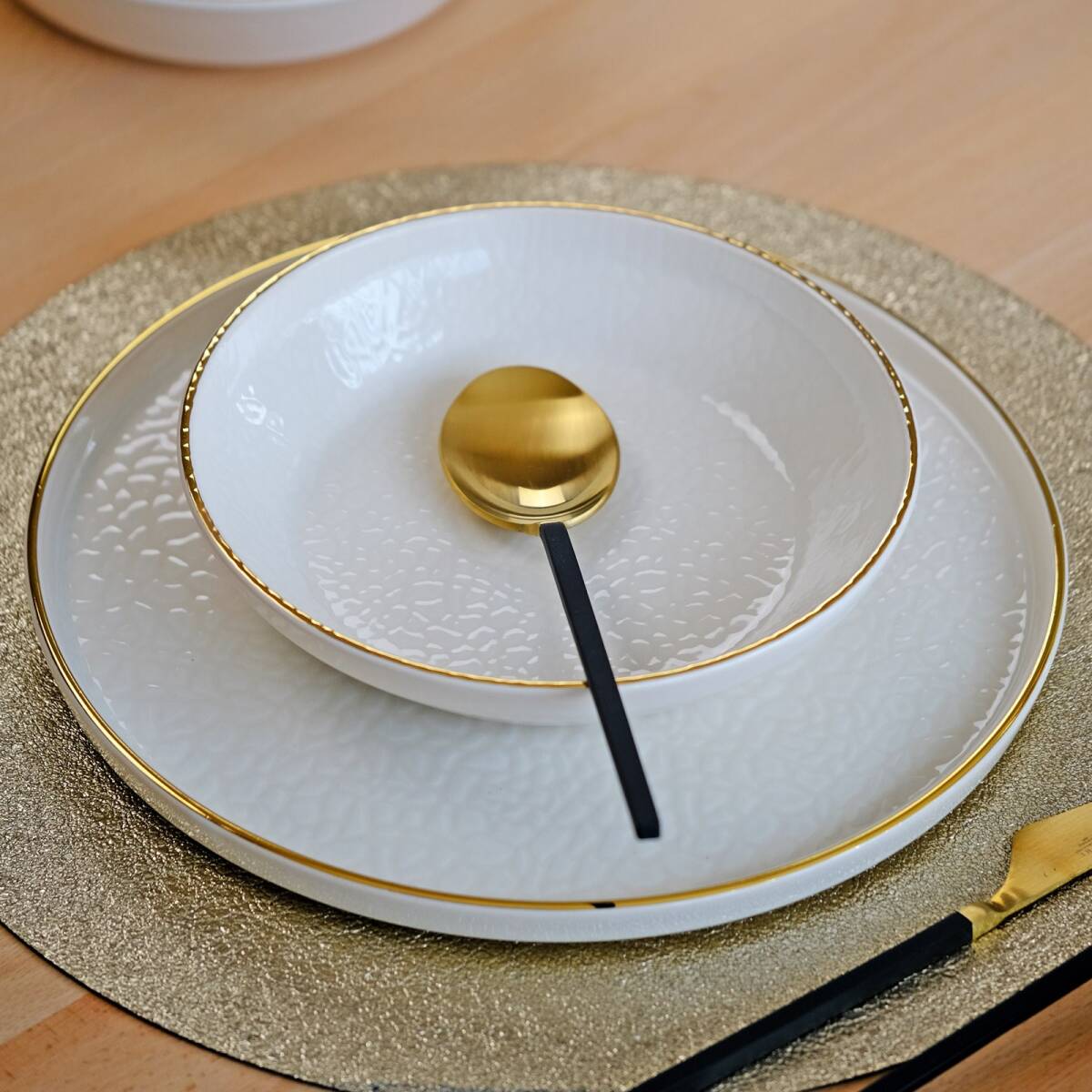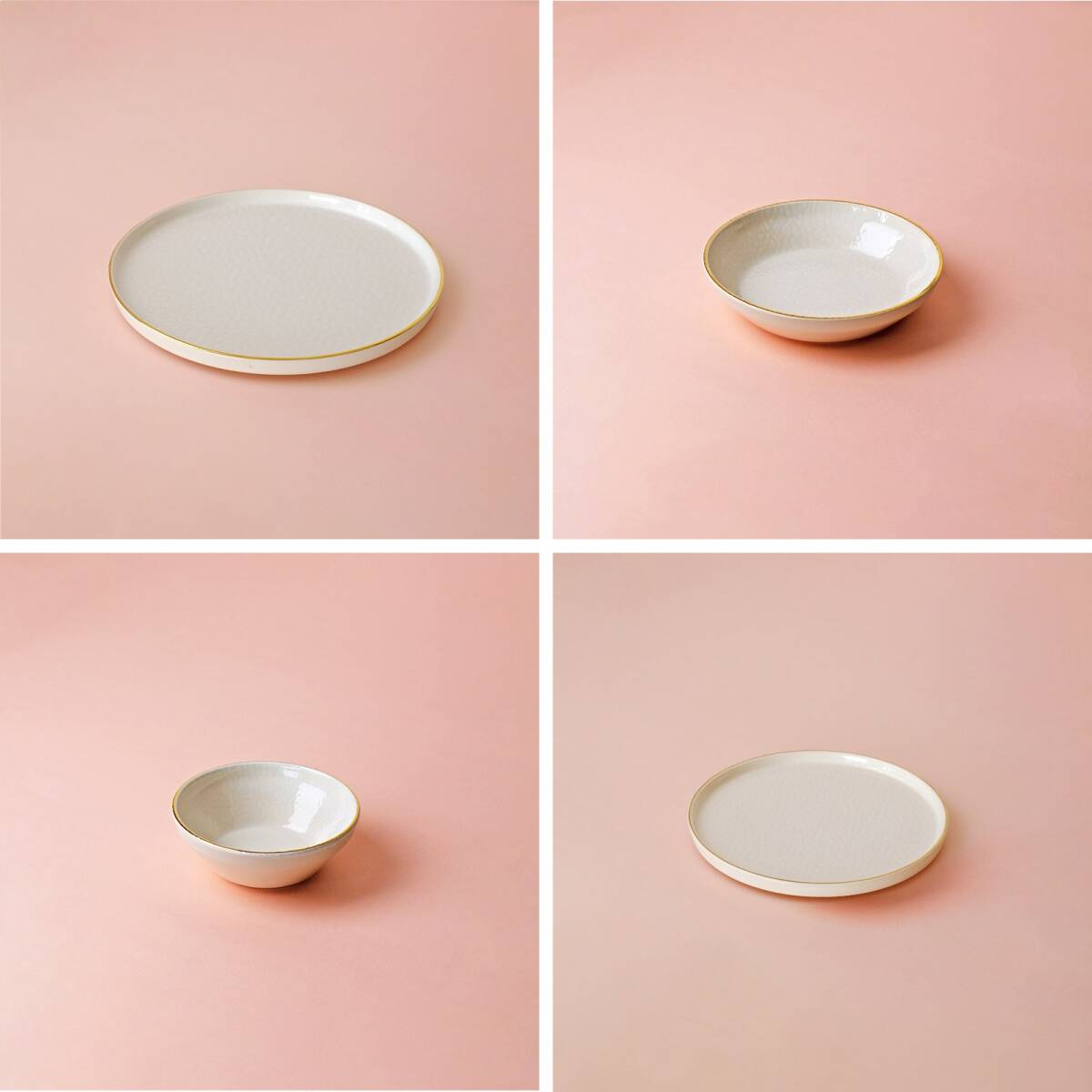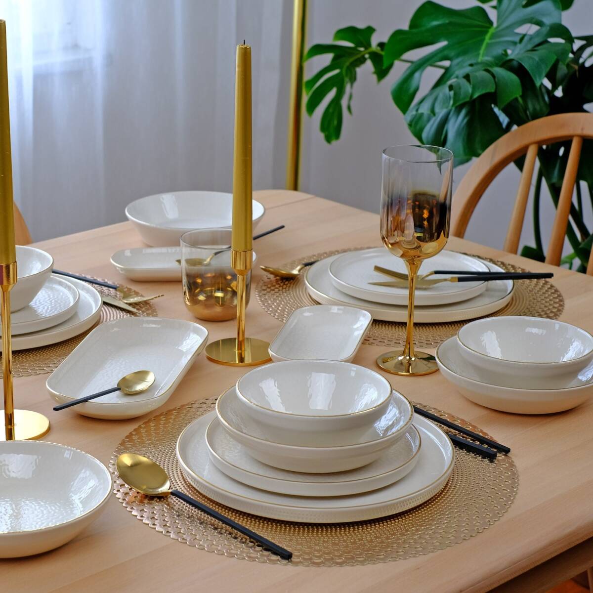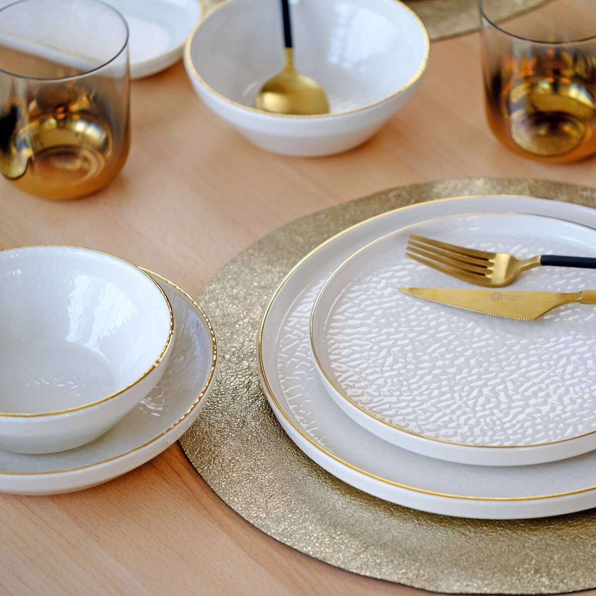 Glore Krem 24 Parça 6 Kişilik Altın Yaldızlı Seramik Yemek Tabağı Takımı
