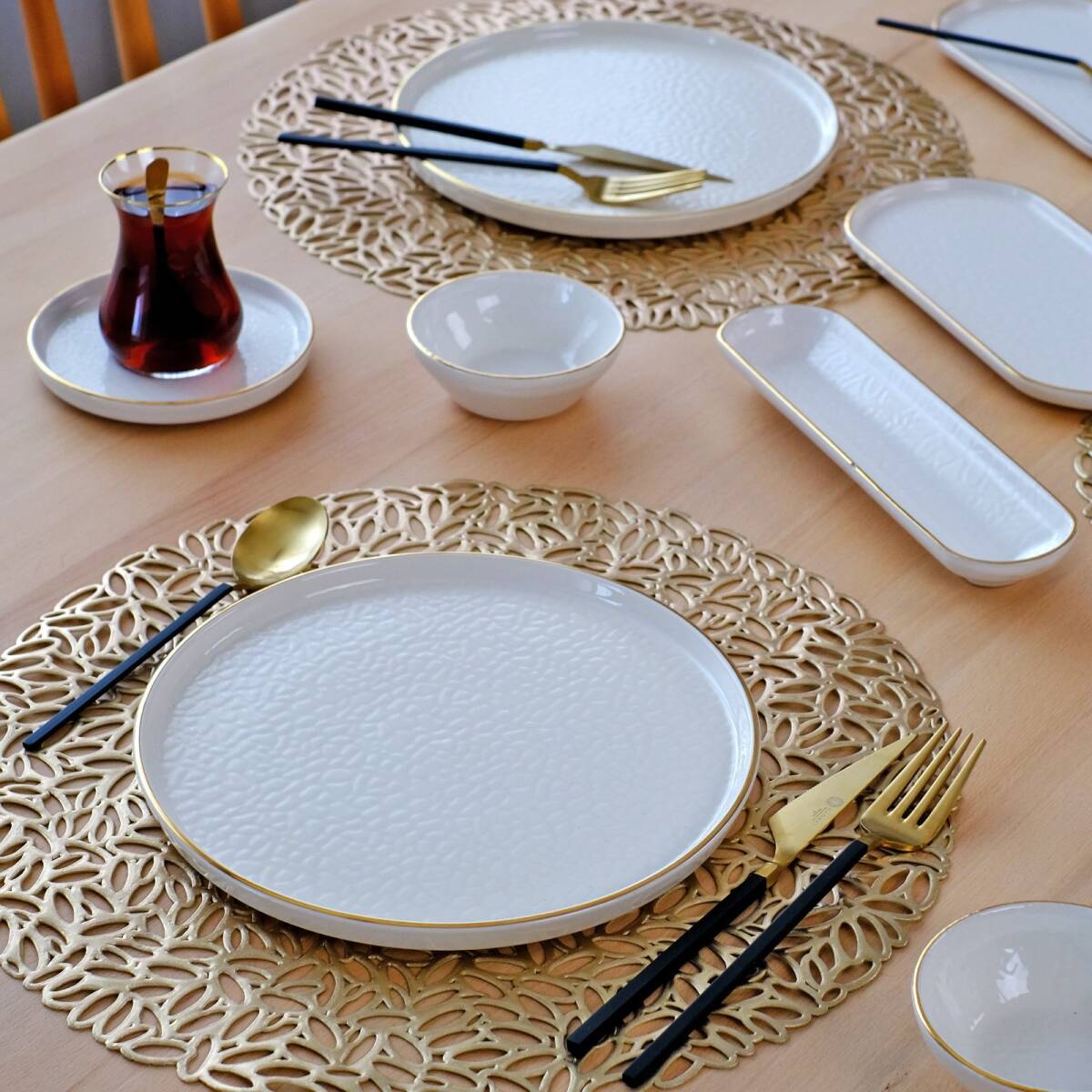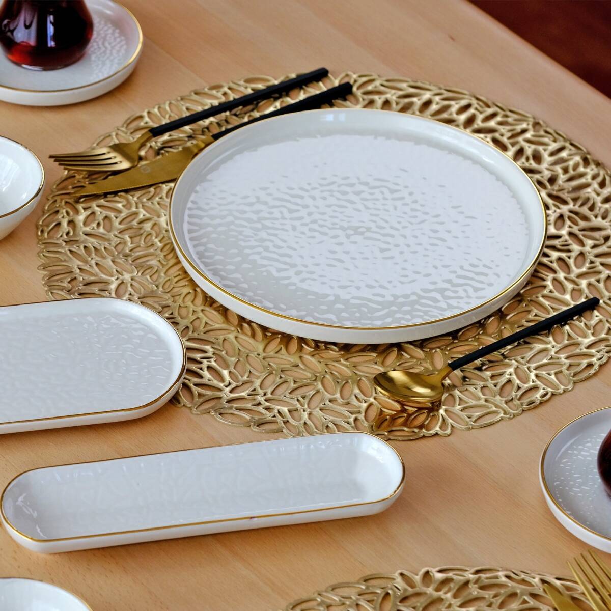 - 2 adet 22cm altın yaldızlı seramik sunum tabağı