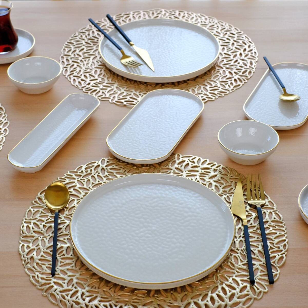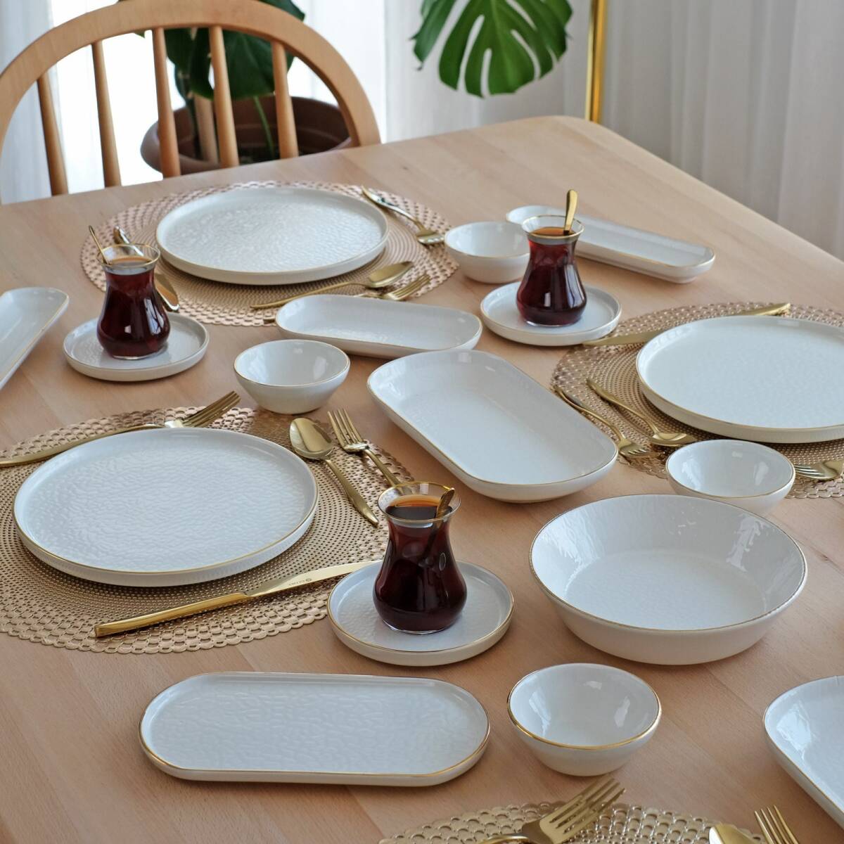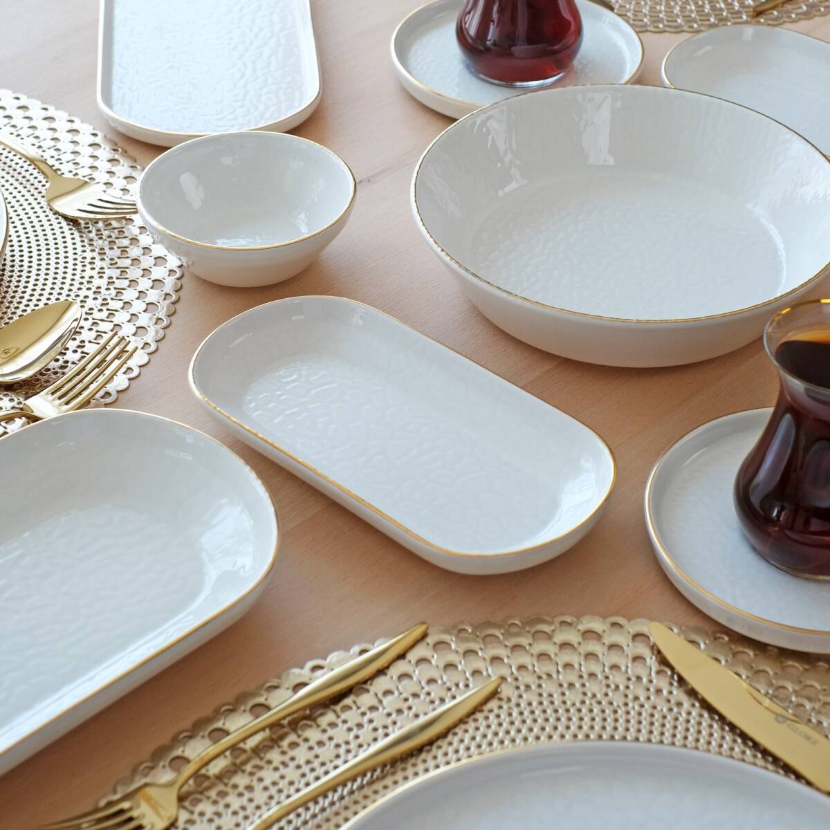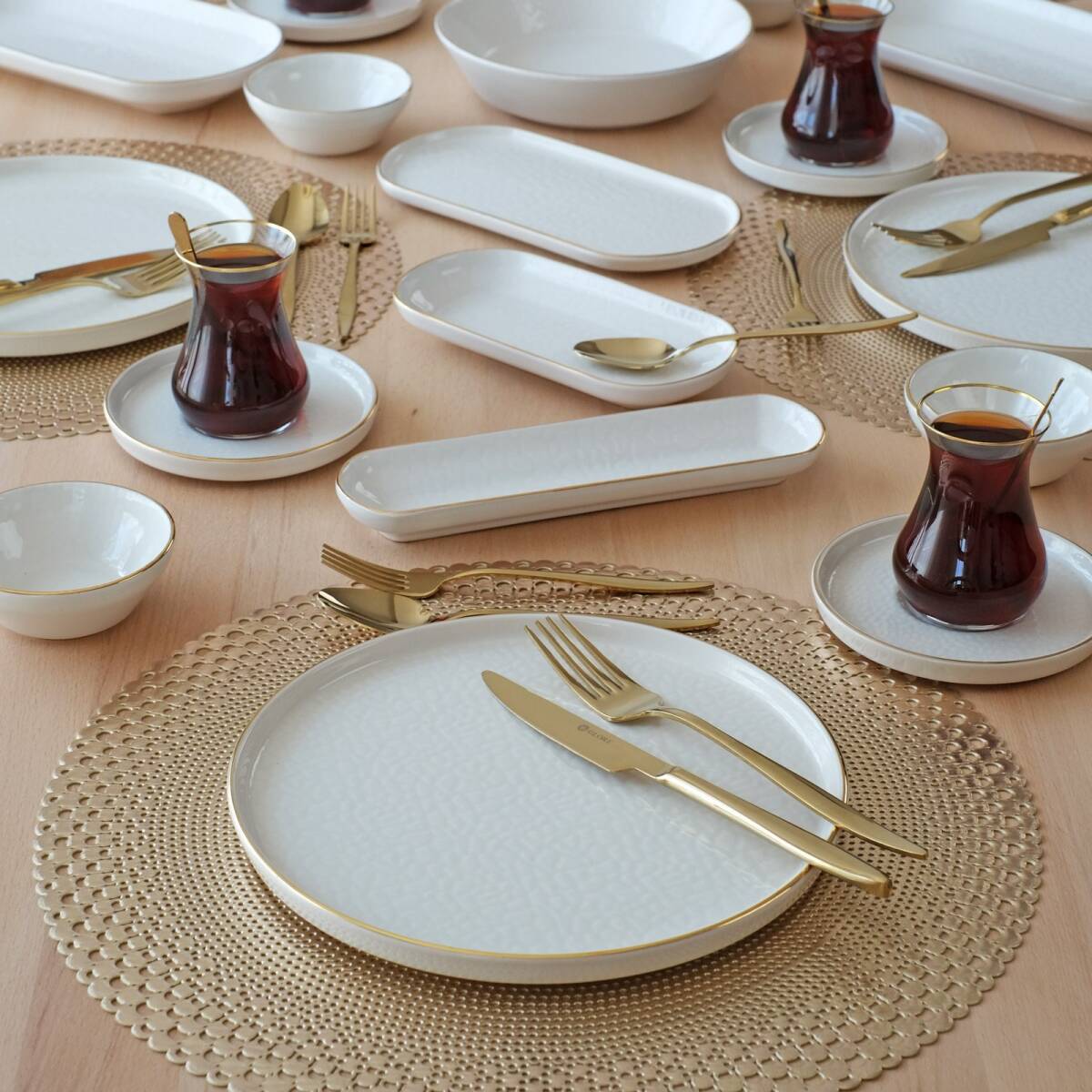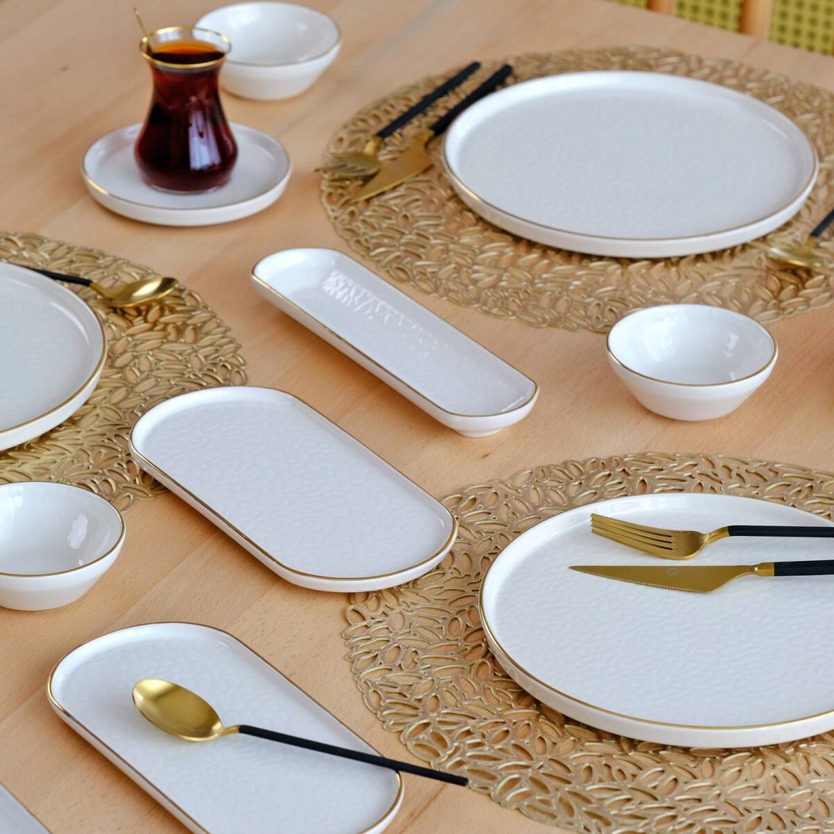Glore Krem 41 Parça 6 Kişilik Altın Yaldızlı Seramik Kahvaltı Takımı