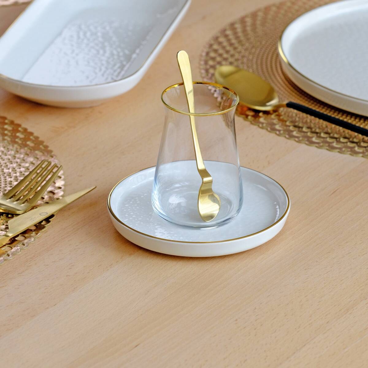 - 6 adet altın yaldızlı cam çay bardağı