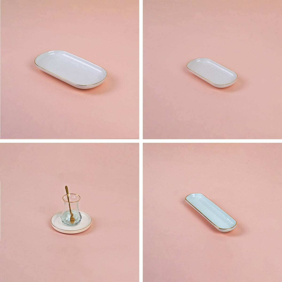 - 4 adet 19cm altın yaldızlı seramik kayık tabak
