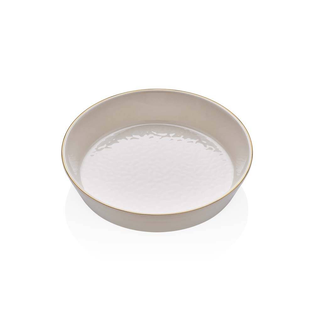 Glore Krem Altın Yaldızlı Seramik Yatay Kase 2'li - 20cm