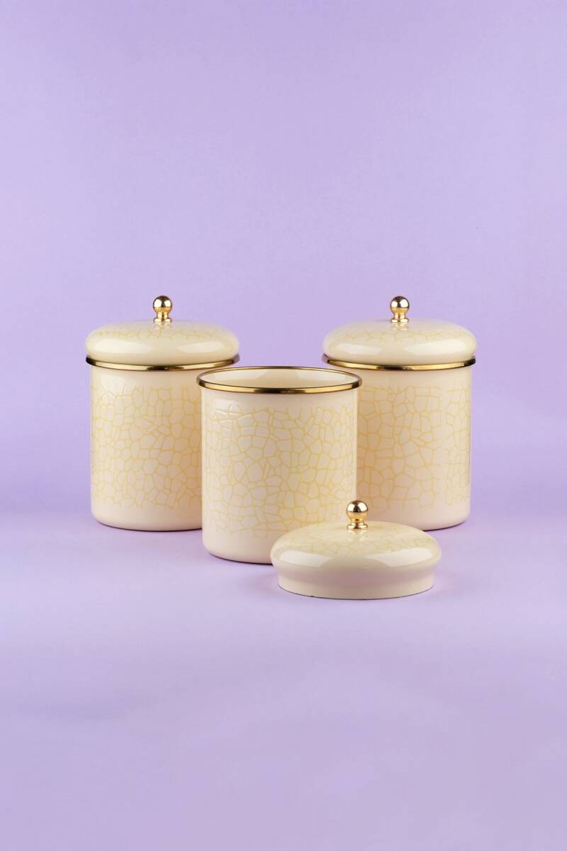 Glore Krem Dokulu Emaye 3'lü Kavanoz - Baharatlık Takımı