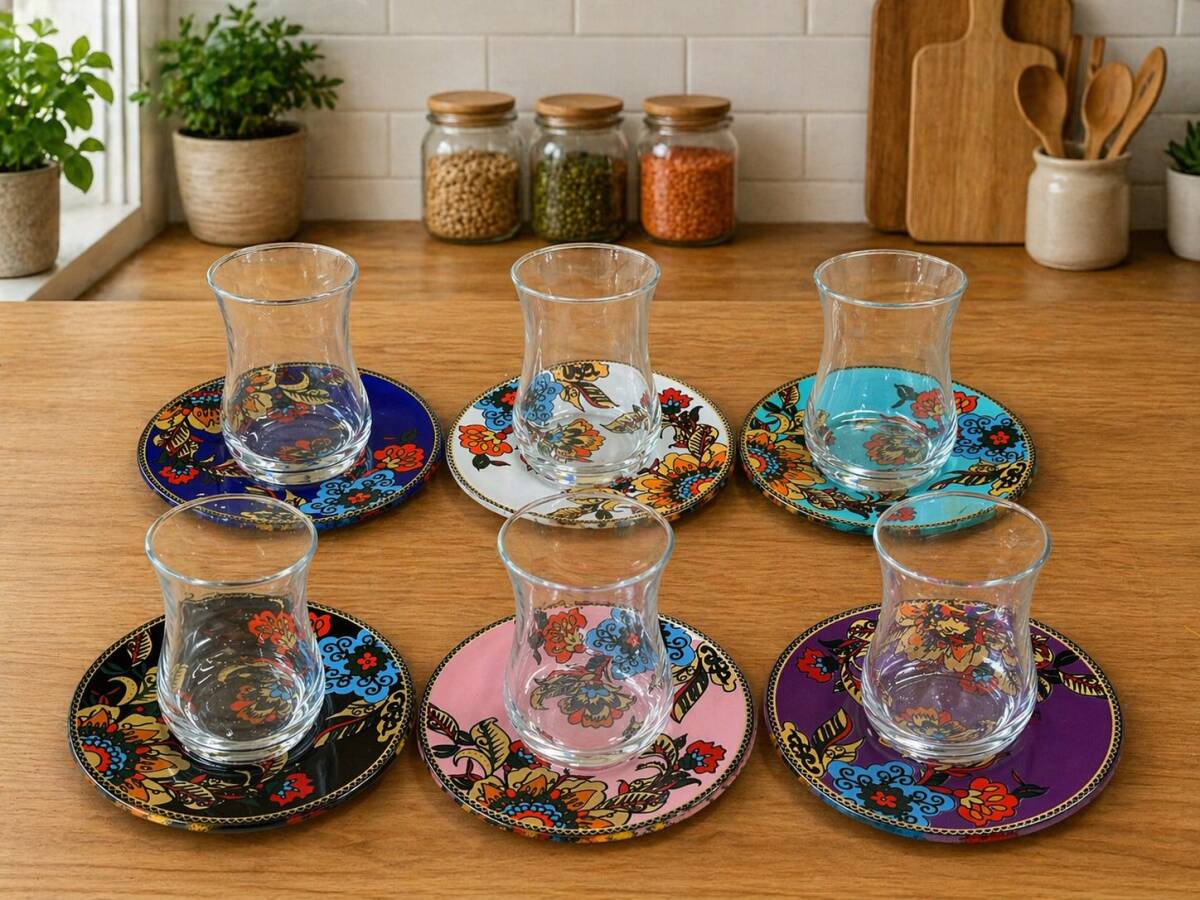 Glore Lorena Asorti 12 Parça 6 Kişilik Yaldızsız Cam Çay Takımı