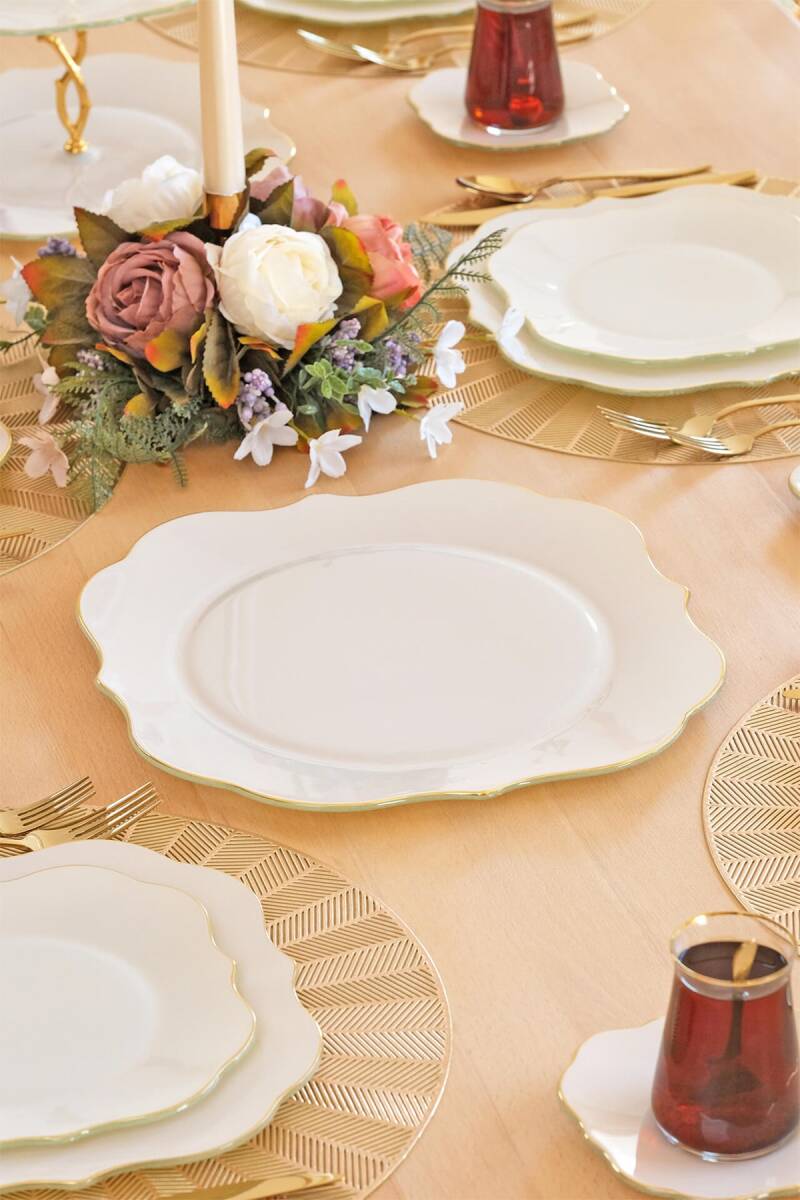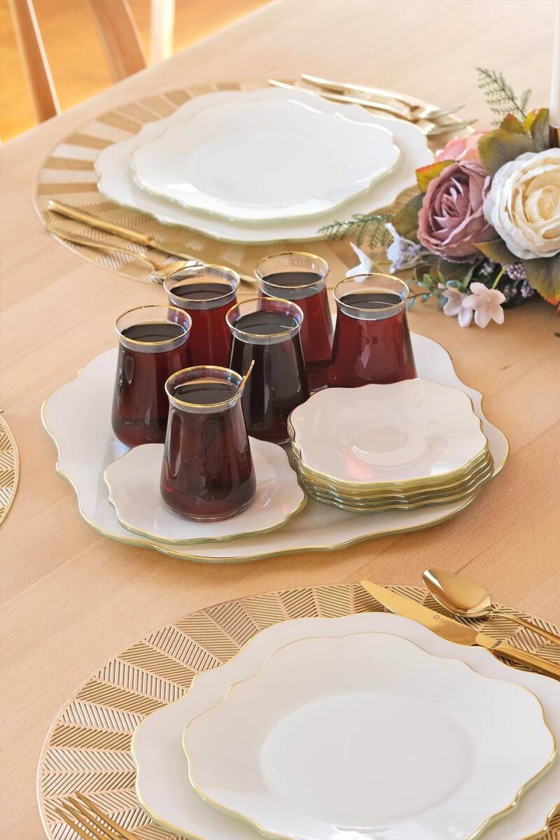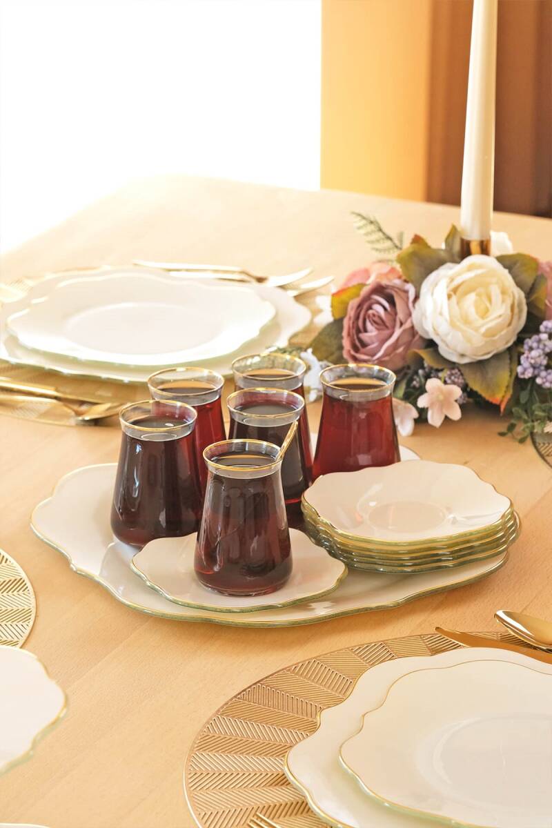 - 1 adet 31cm altın yaldızlı cam tepsi