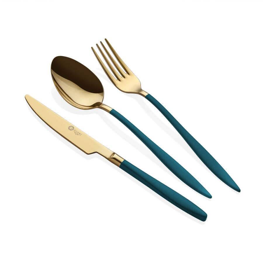 Glore Paris 36 Parça 6 Kişilik Çatal Kaşık Bıçak Takımı Parlak Altın Yeşil