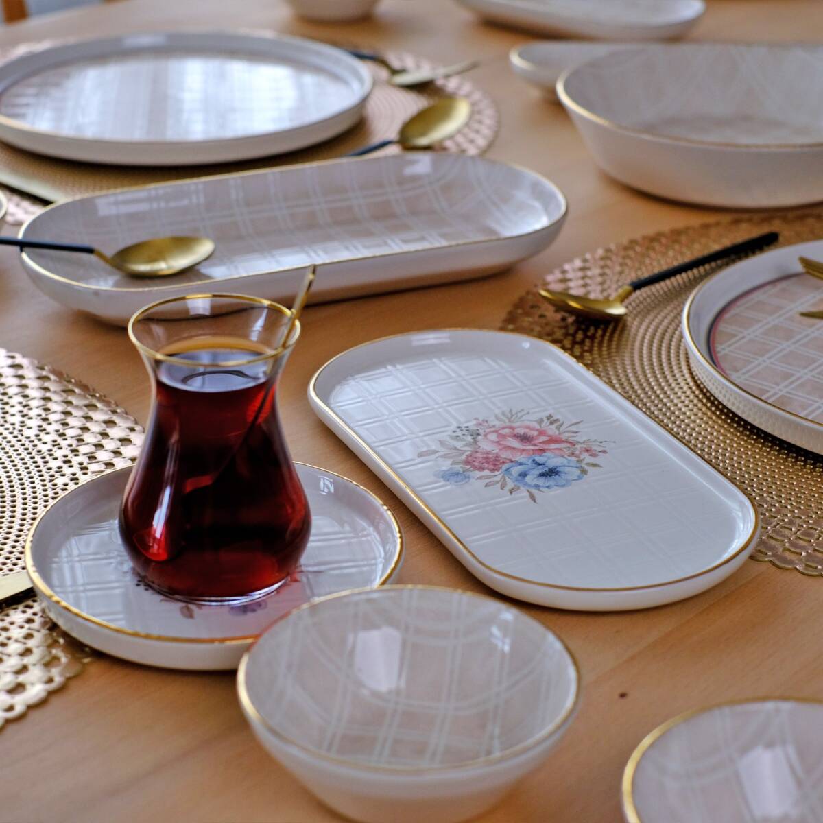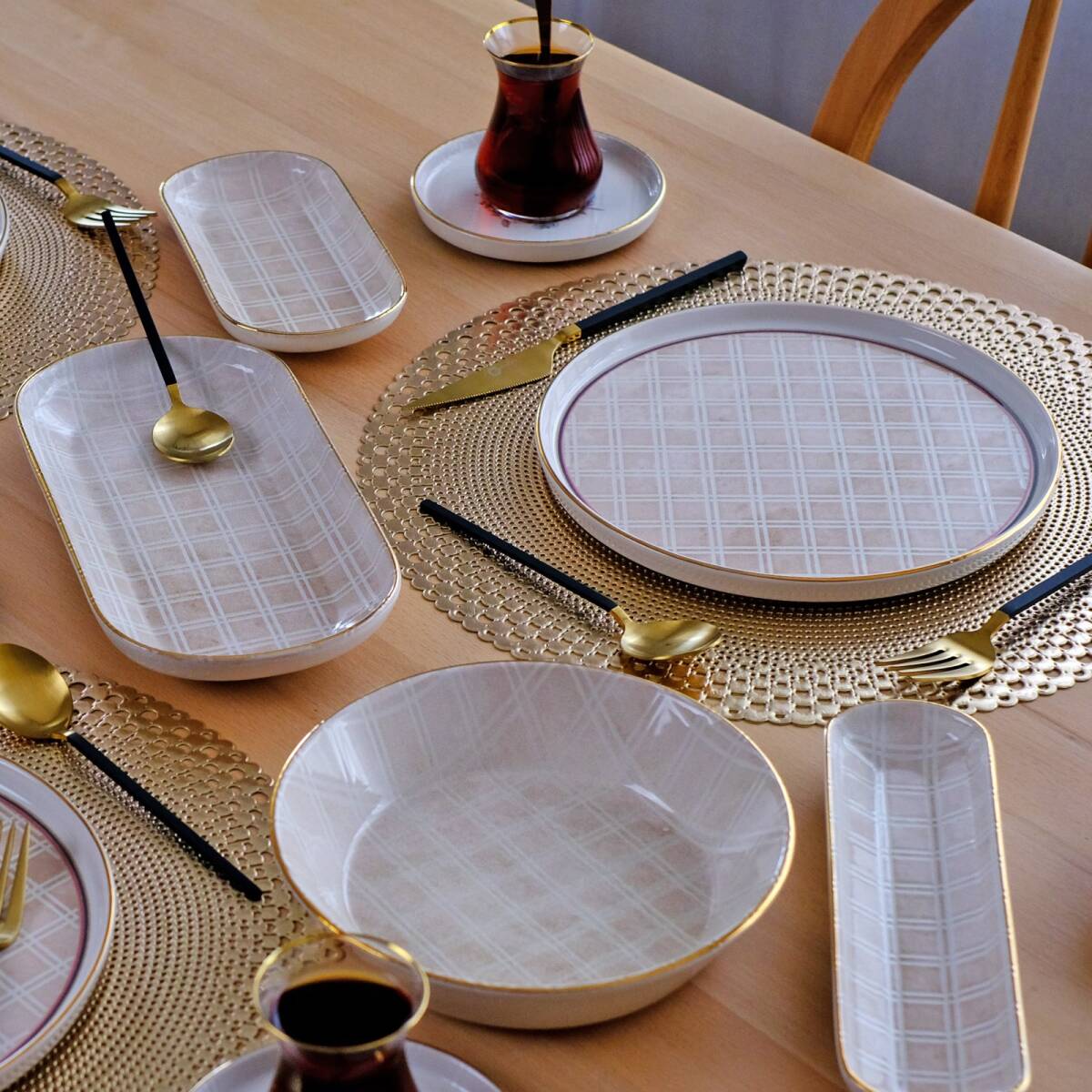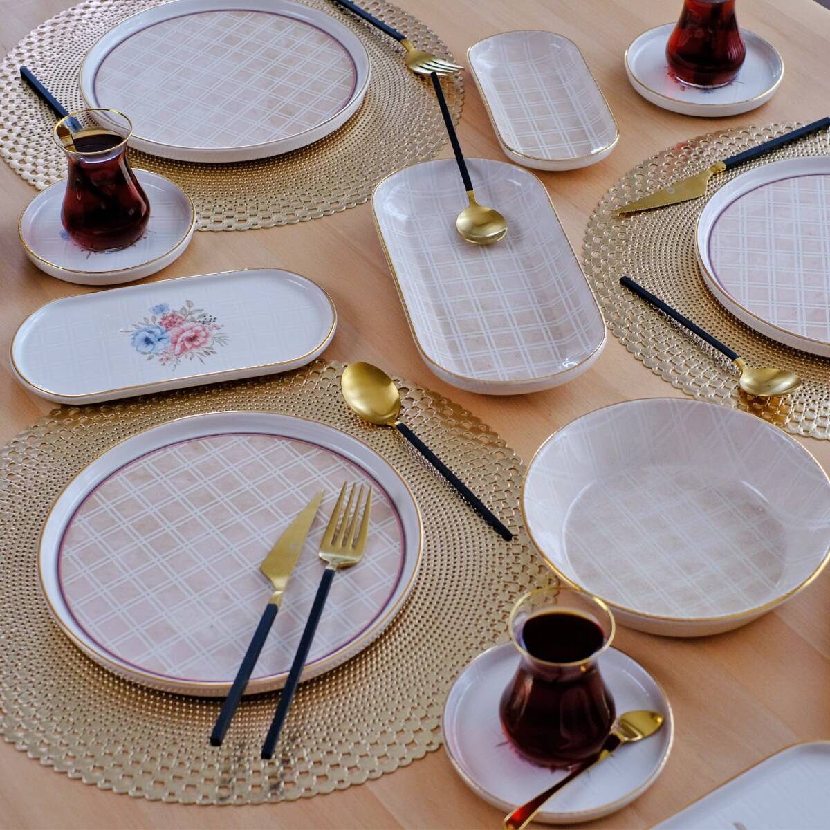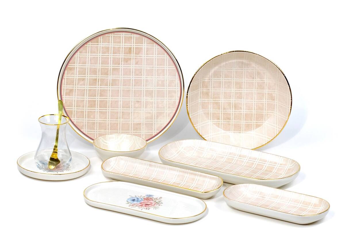 Glore Peta 41 Parça 6 Kişilik Altın Yaldızlı Seramik Kahvaltı Takımı