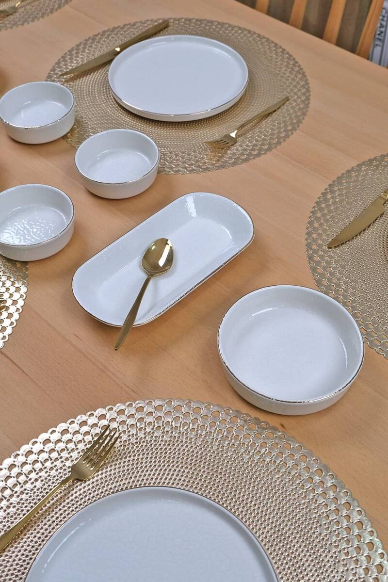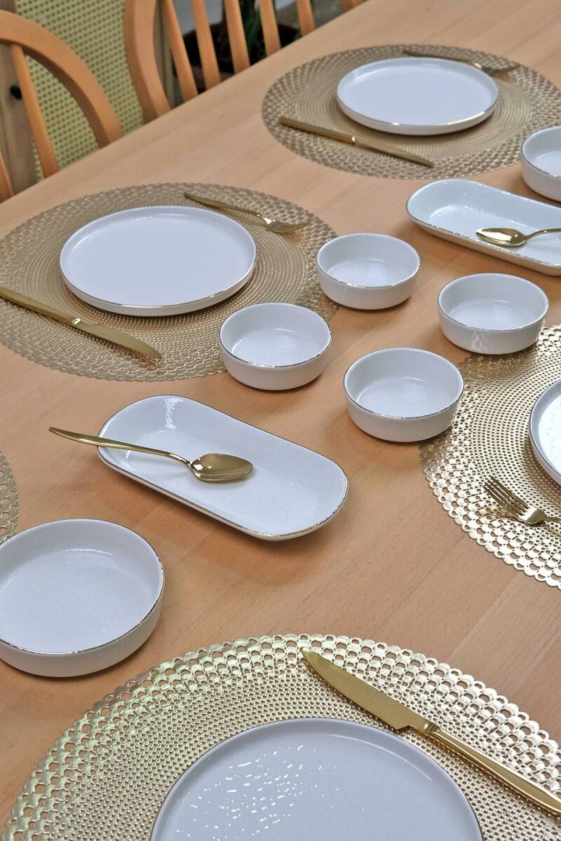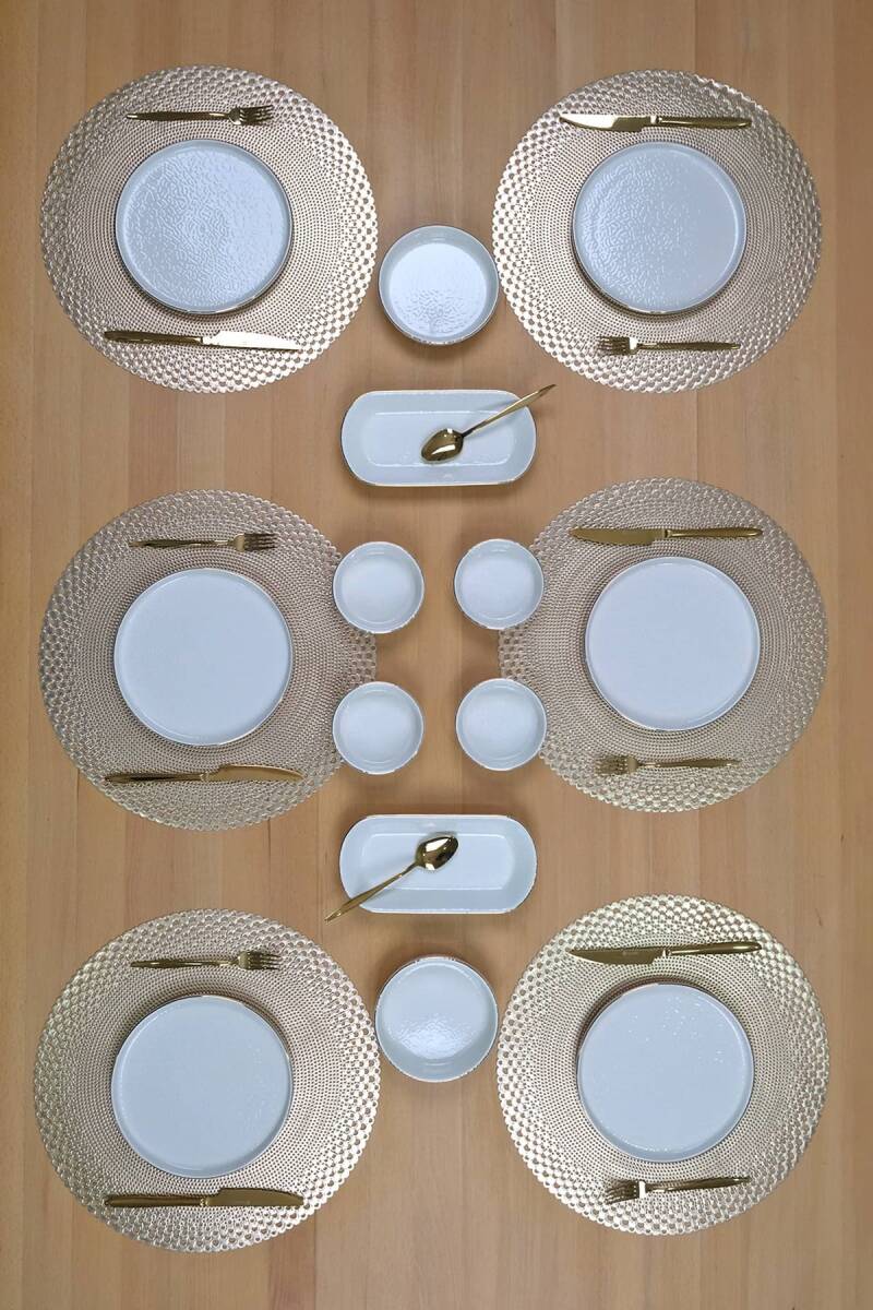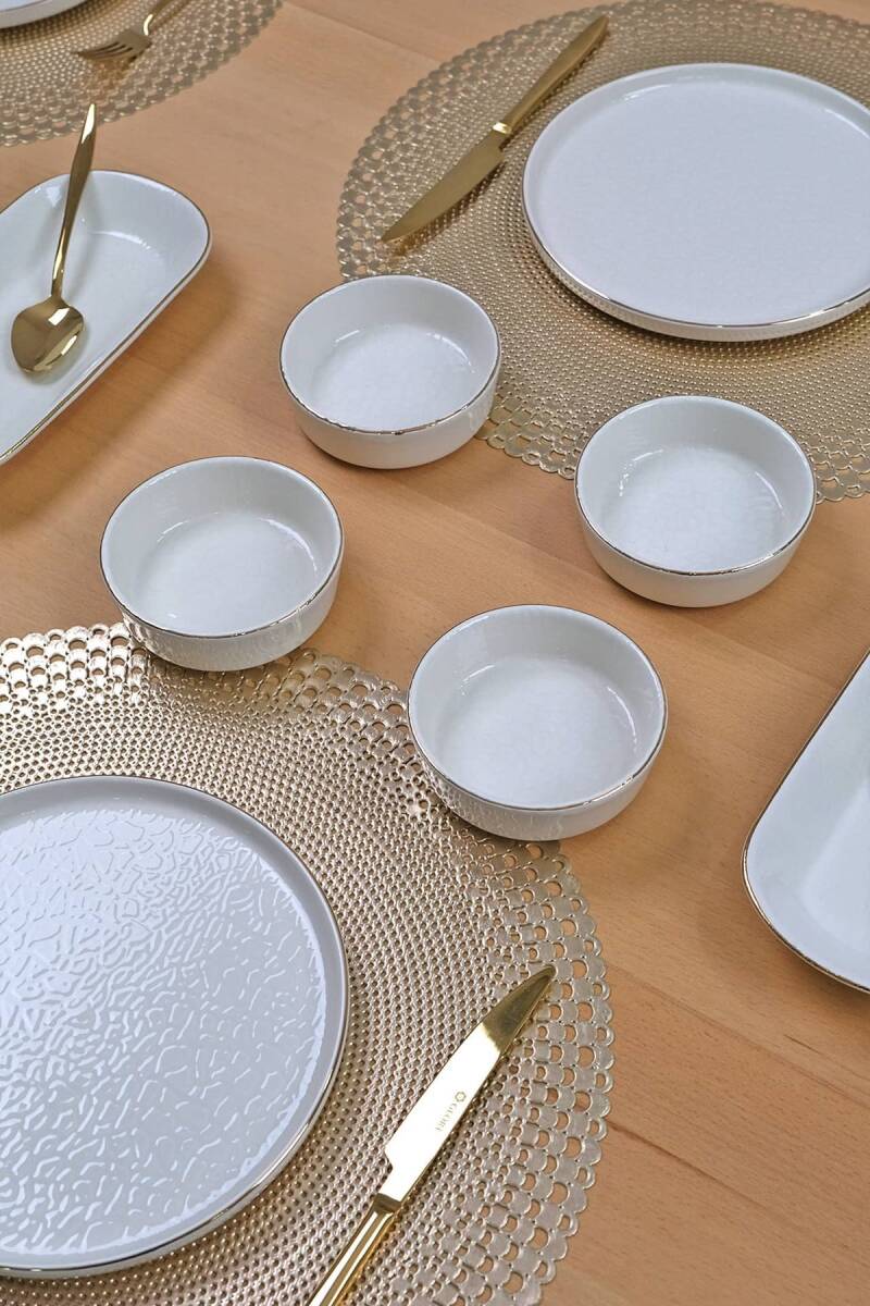 Glore Reaktif Krem 14 Parça 6 Kişilik Altın Yaldızlı Kahvaltı Takımı