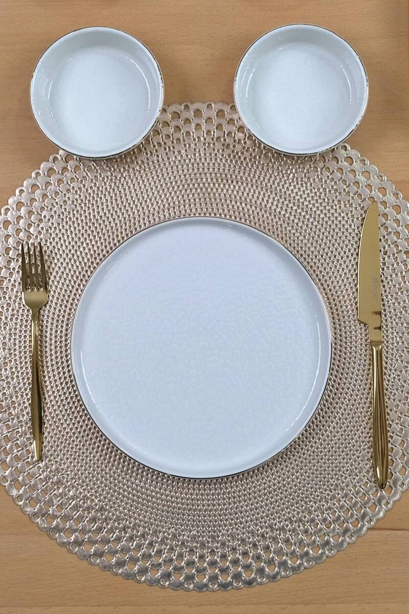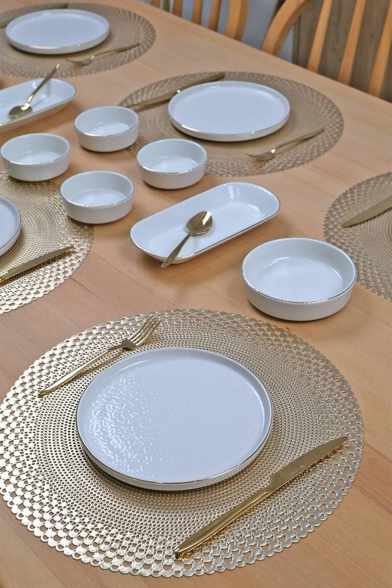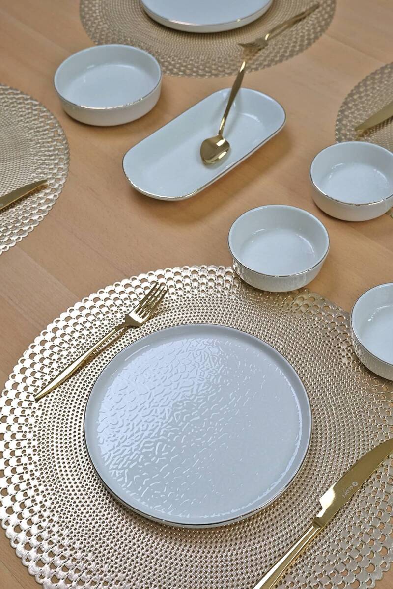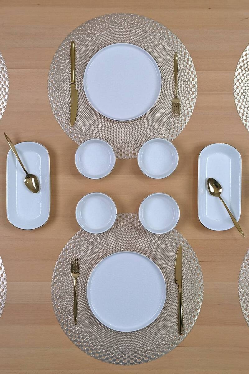 Glore Reaktif Krem 14 Parça 6 Kişilik Altın Yaldızlı Kahvaltı Takımı