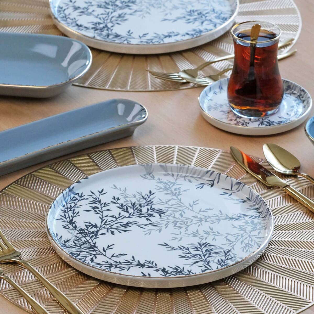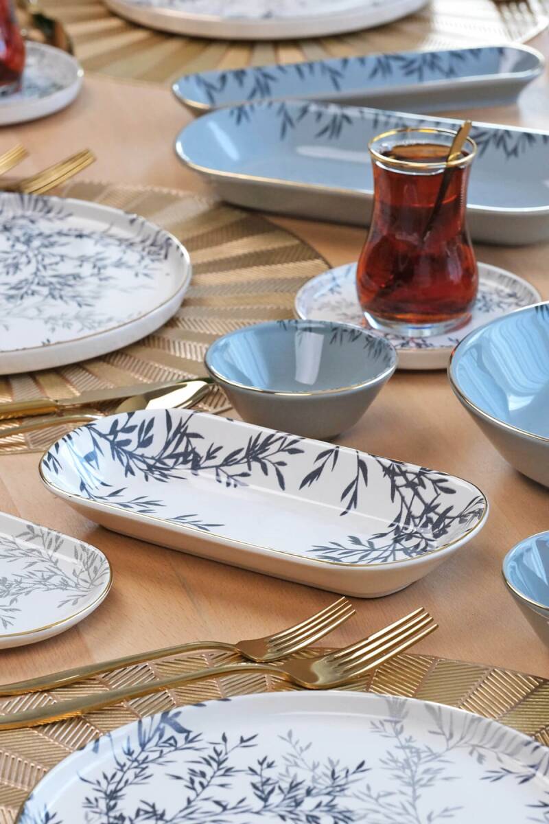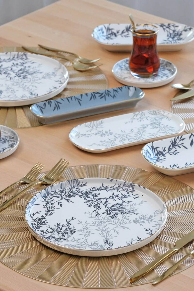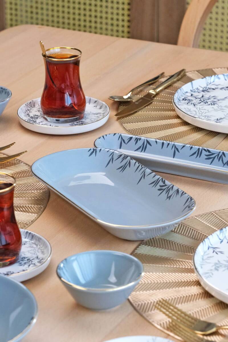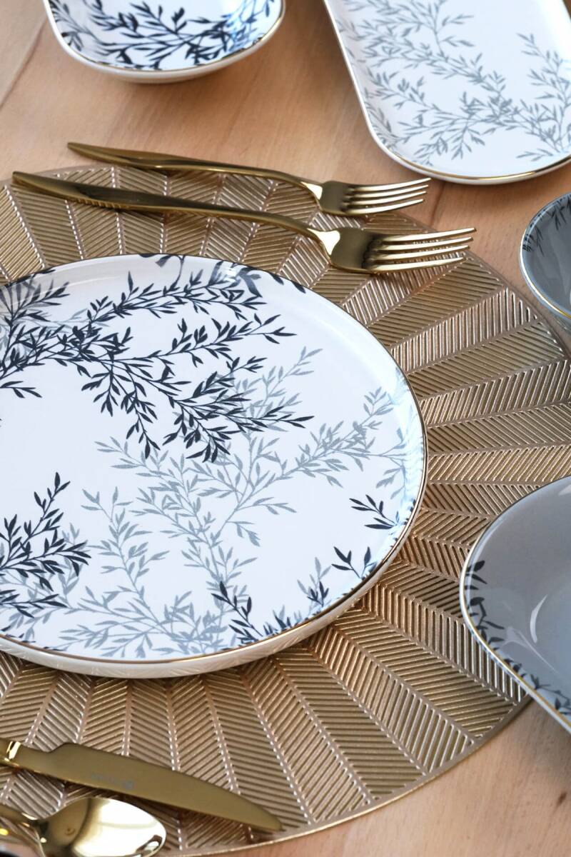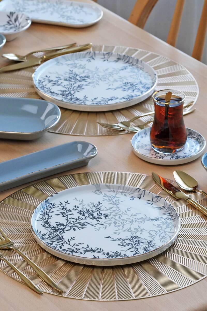 Glore Shadow 41 Parça 6 Kişilik Altın Yaldızlı Seramik Kahvaltı Takımı