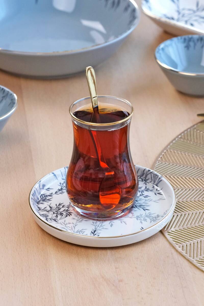 - 6 adet altın yaldızlı cam çay bardağı