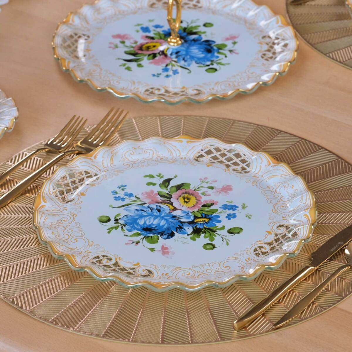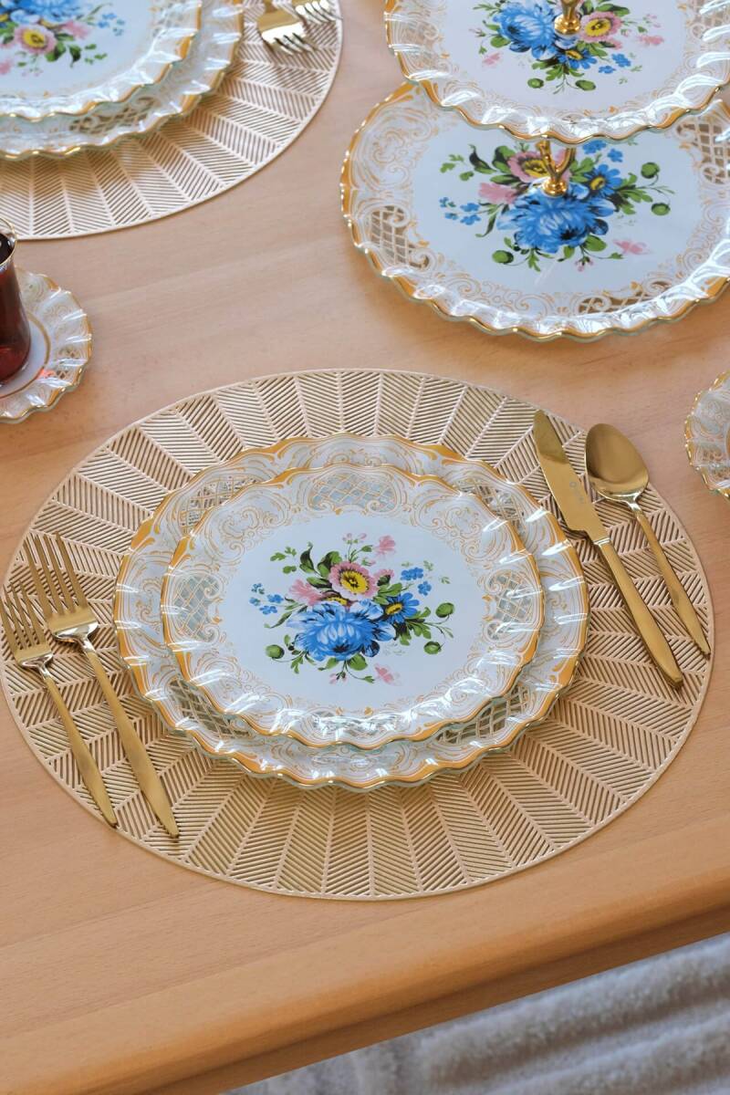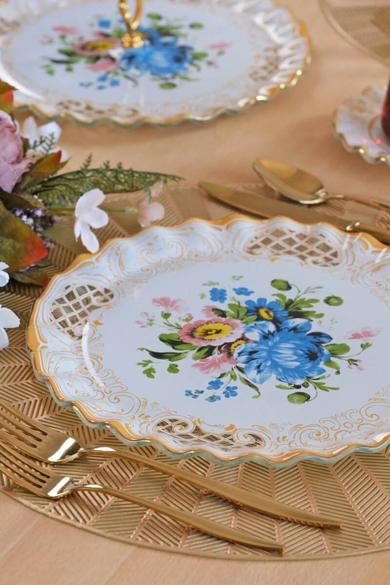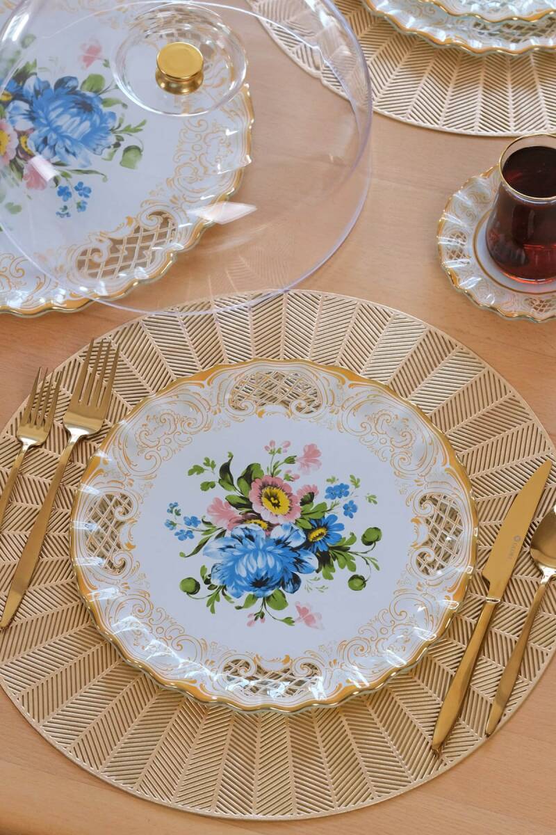 - 6 adet 26cm altın yaldızlı cam servis tabağı