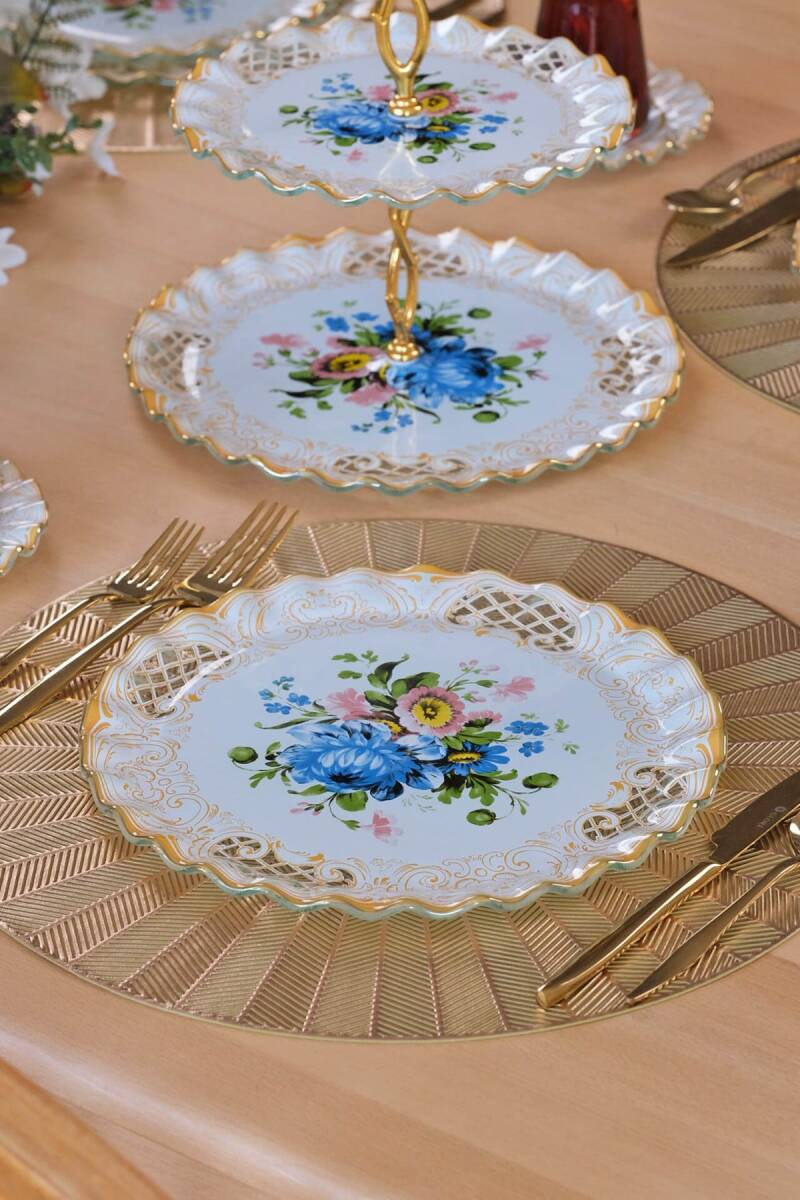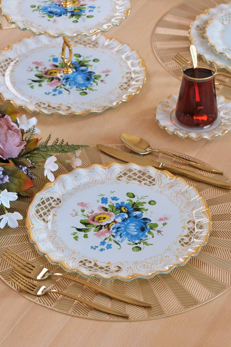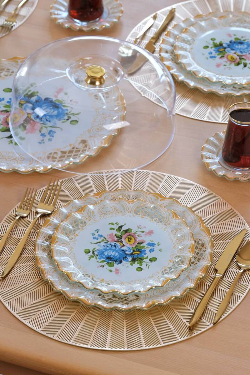 Glore Tiete 6 Kişilik Altın Yaldızlı Cam Servis Tabağı Takımı