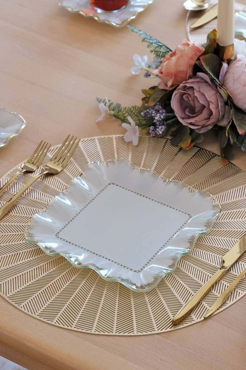- 6 adet 21cm şeffaf altın yaldızlı cam pasta tabağı