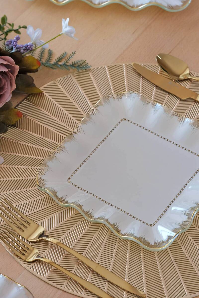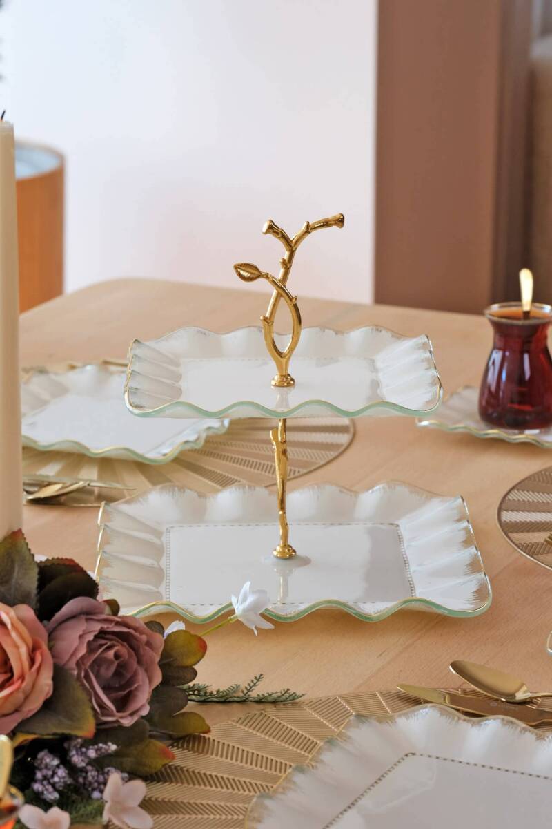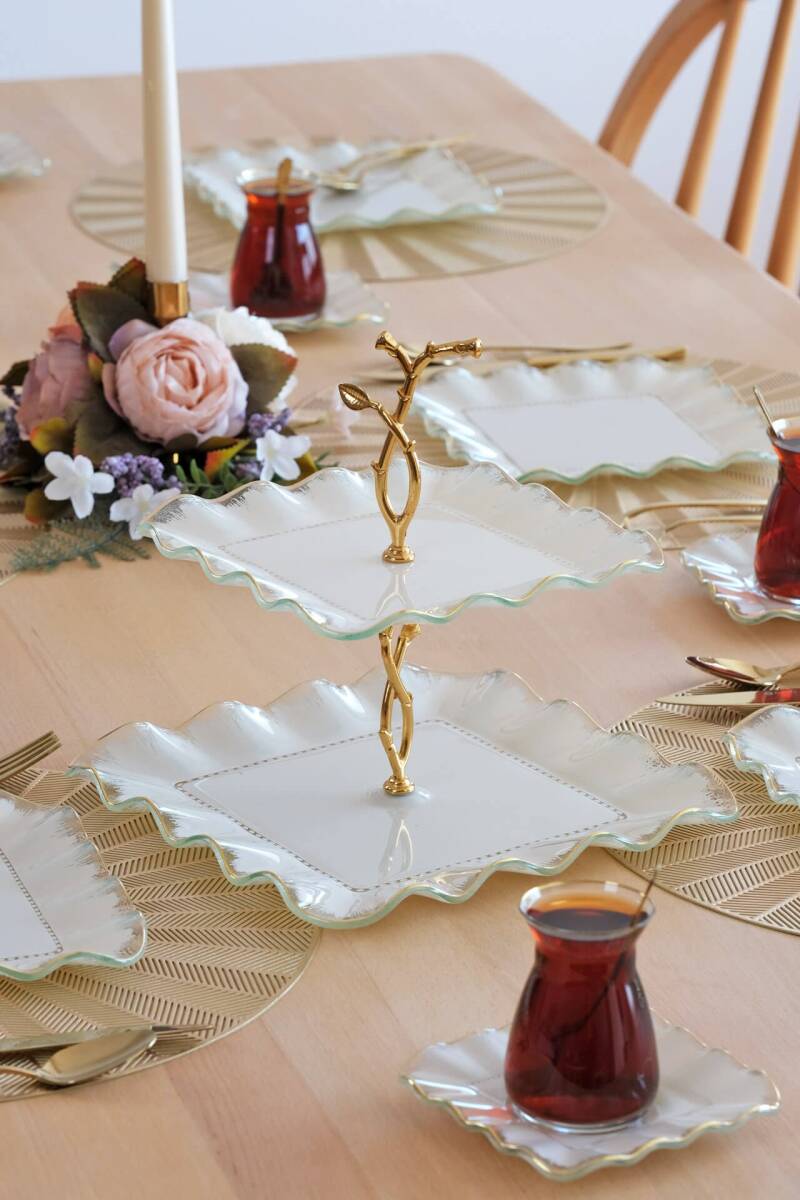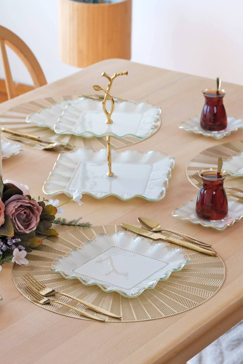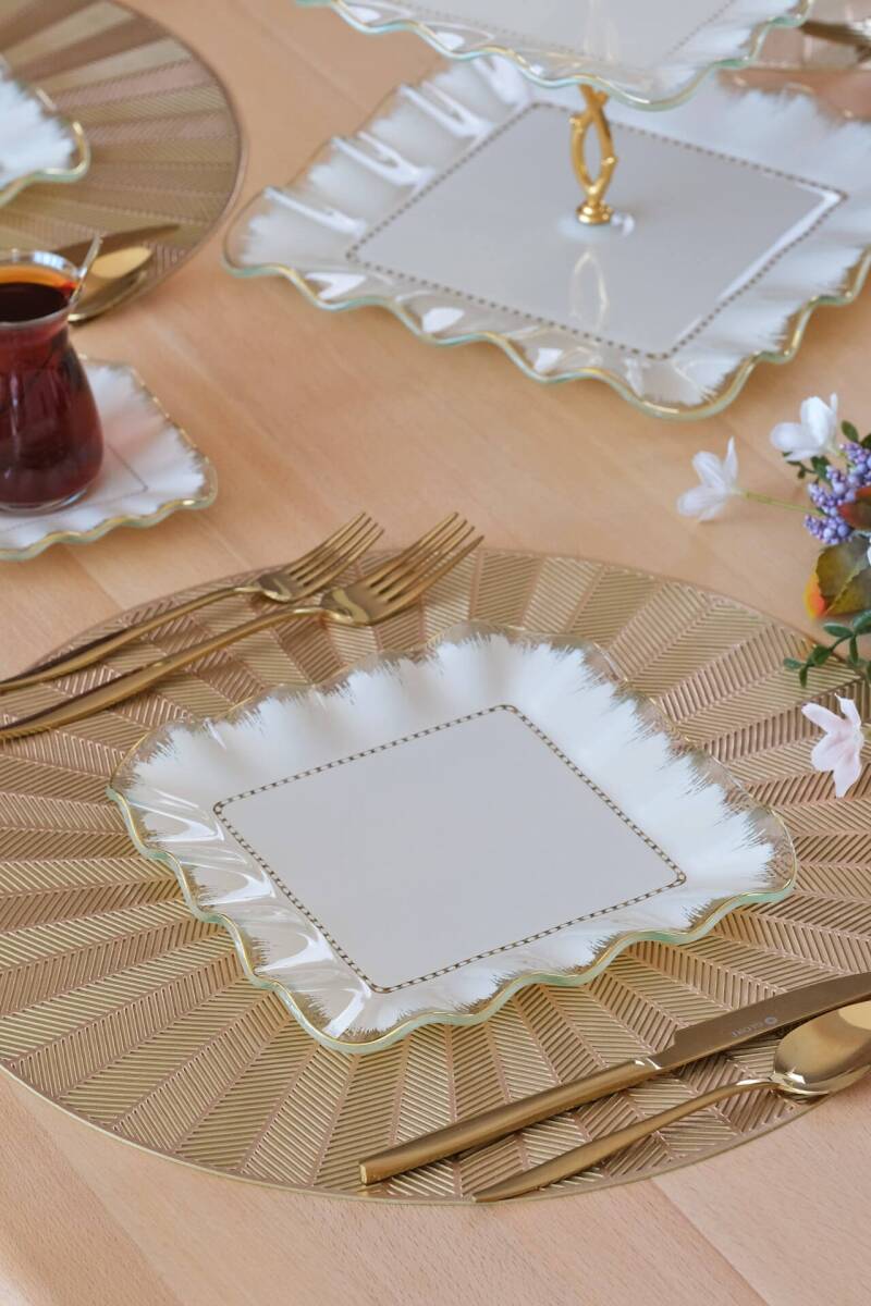 Glore Kare Latte Şeffaf Altın Yaldızlı 6 Kişilik 26 Parça Pasta Takımı