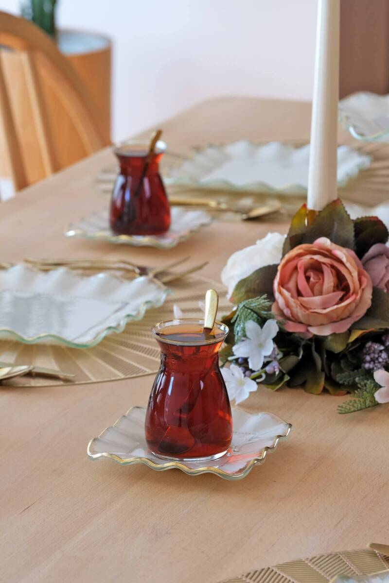 - 6 adet şeffaf altın yaldızlı cam çay tabağı