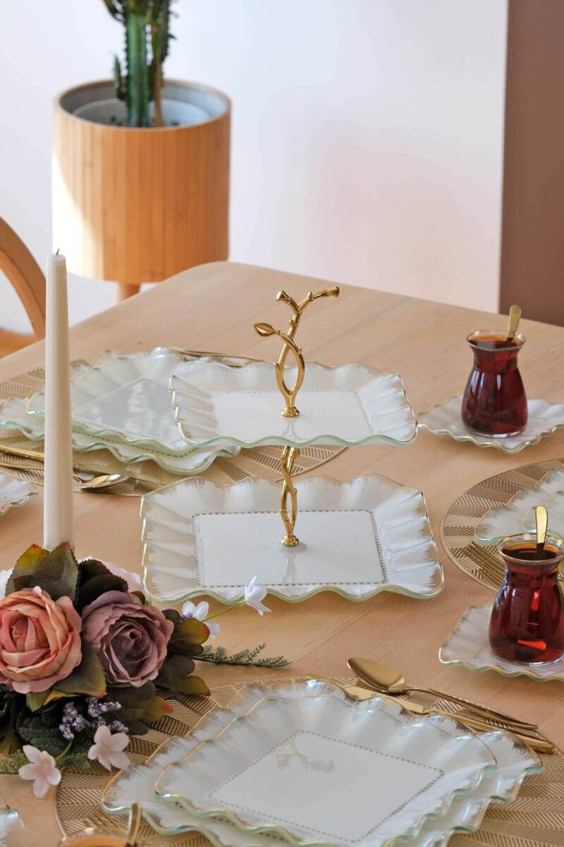 - 1 adet 26cm şeffaf altın yaldızlı cam kurabiyelik tabak