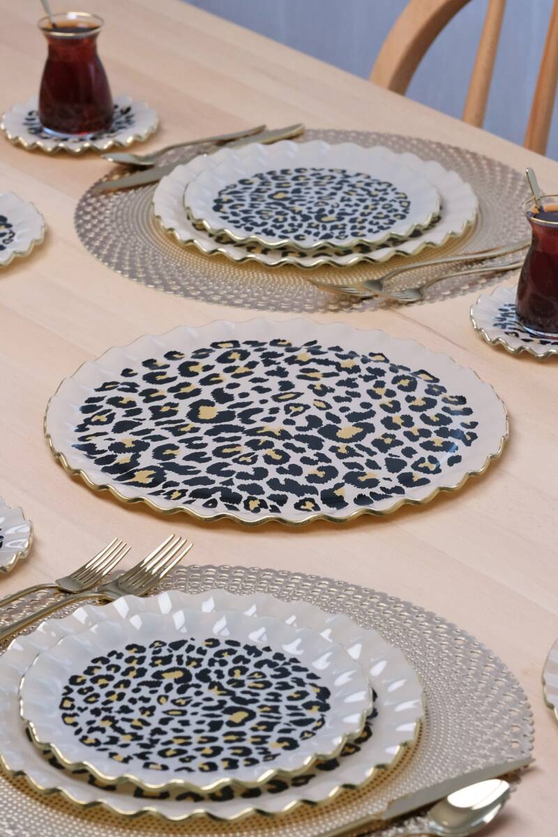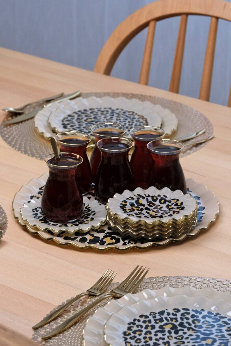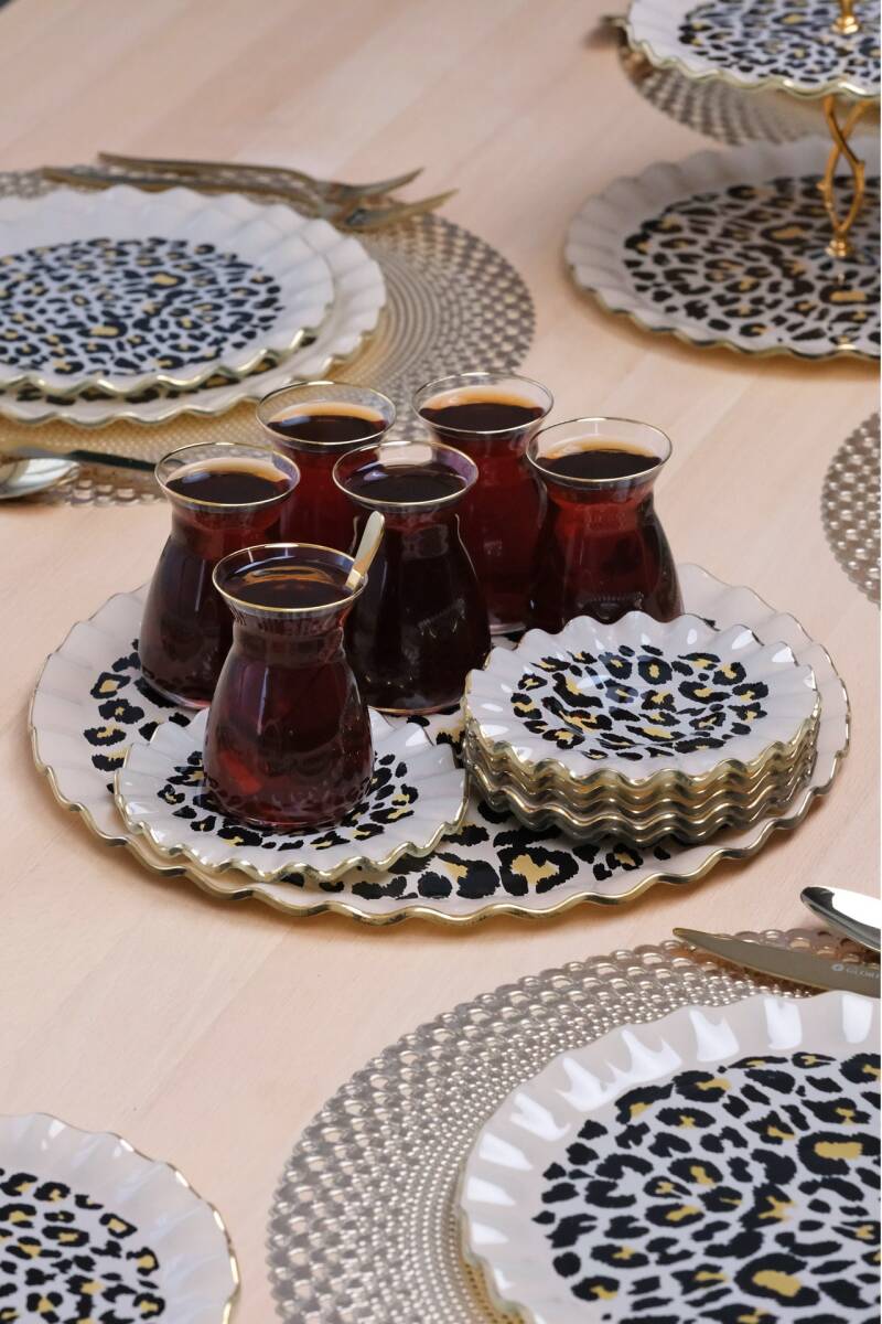 Glore Leopar Wavy Altın Yaldızlı Cam Tepsi