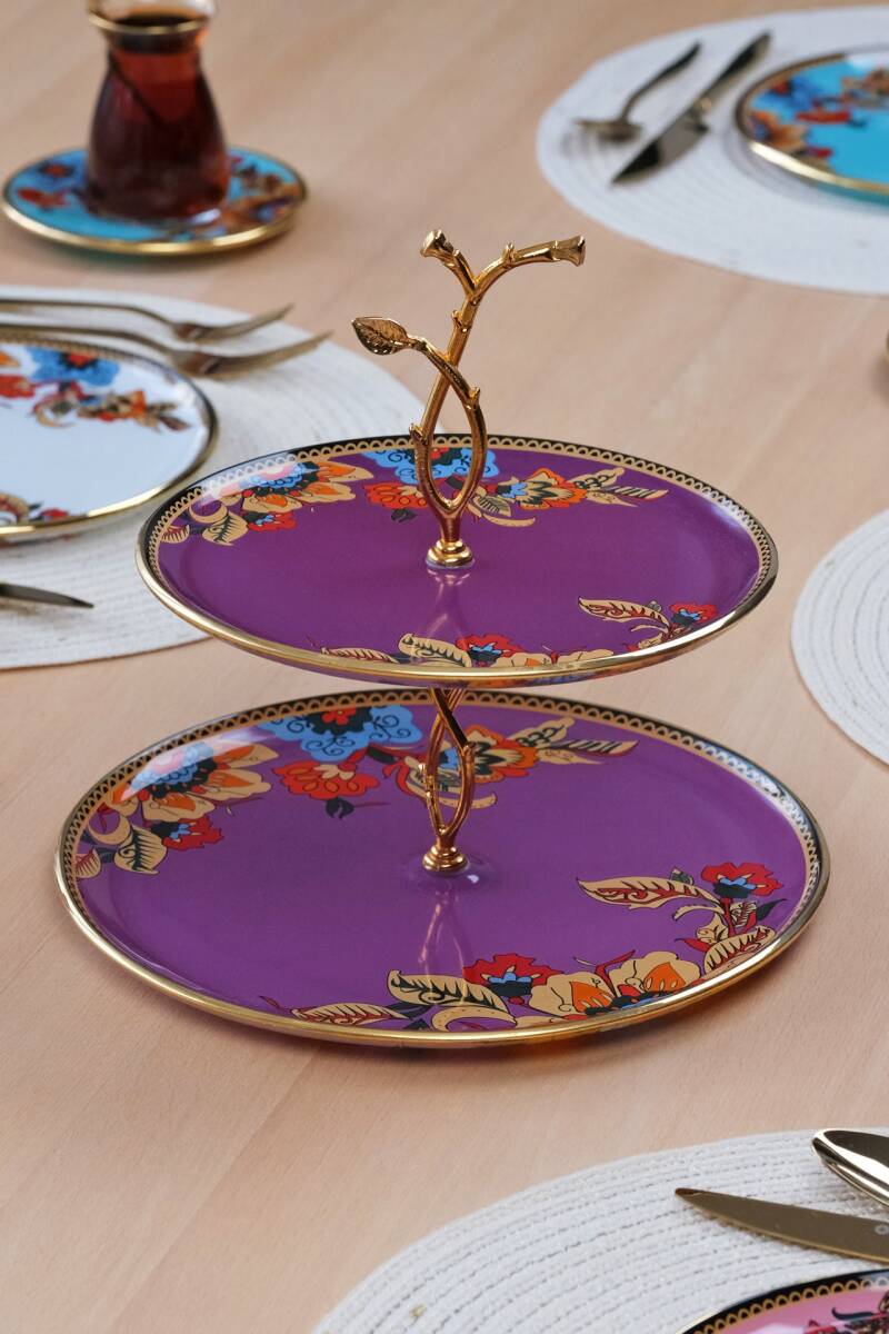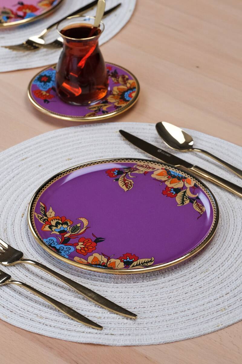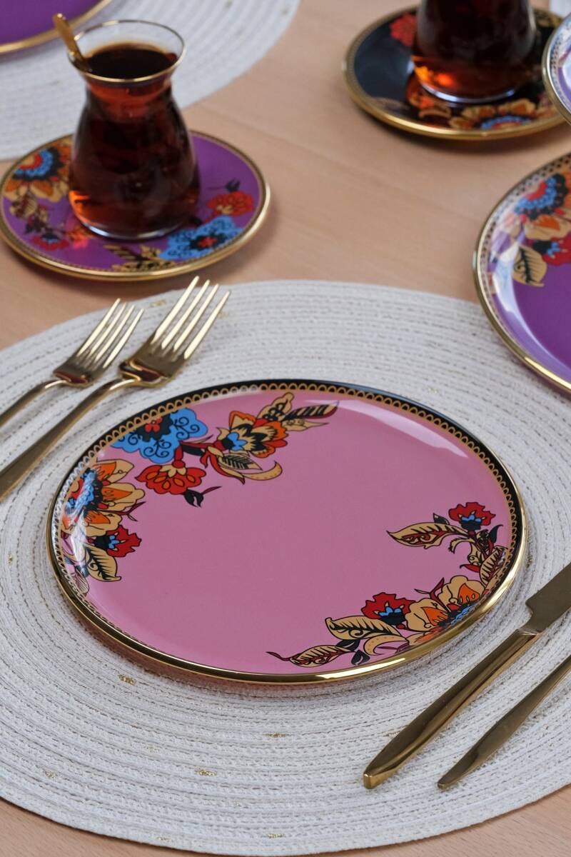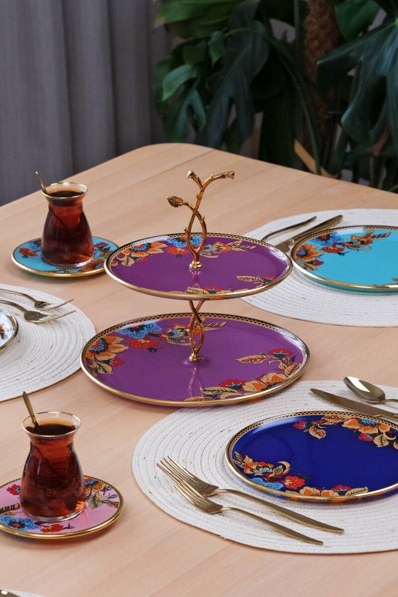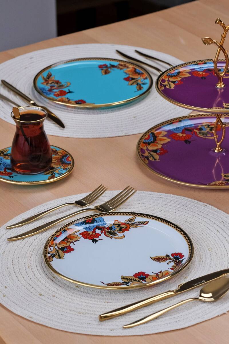 Glore Lorena Asorti Altın Yaldızlı 6 Kişilik 26 Parça Pasta Takımı
