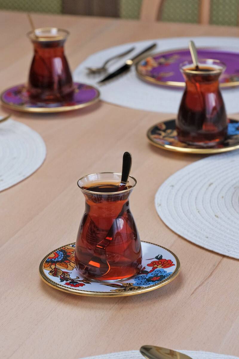 - 6 adet 21cm altın yaldızlı cam pasta tabağı